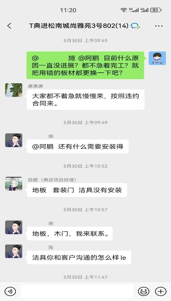 監(jiān)理第一次到現(xiàn)場并且約了典進(jìn)工程主管顧某、項(xiàng)目經(jīng)理陸某鵬。監(jiān)理也明確了按照正常房屋水電所有材料相比,我的房子明顯偏多,畢竟施工剛開始我也不能太強(qiáng)勢,最終雙方協(xié)商在原報(bào)價(jià)上打85折方式收場,但是從之后項(xiàng)目經(jīng)理陸某鵬就開始陰陽怪氣,進(jìn)場不通知業(yè)主,收工不及時(shí)反饋施工情況,問些問題也是答非所問;