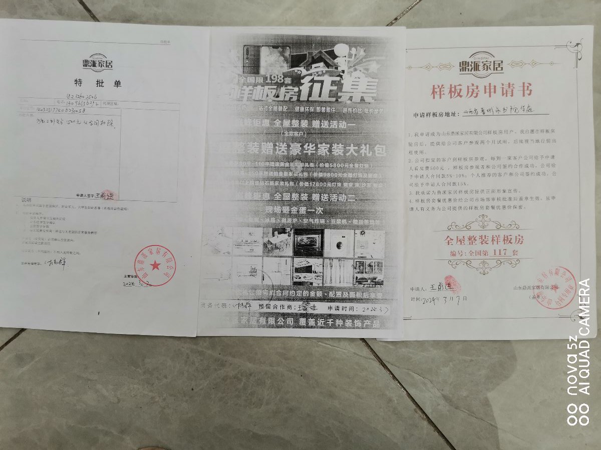 我于2024年3月7日與商家就房屋裝修事宜簽定了《鼎派家居裝飾裝修產(chǎn)品套餐供貨合同》,合同約定:(乙方)向(甲方)購買空間整裝方案、全屋定制系列材料及成為“特約樣版房”一事,雙方達(dá)成協(xié)議: