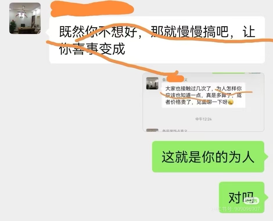 2)毫無專業(yè),在不了解后果和處理辦法的情況下,擅自鏟除我家墻面和天花板,導(dǎo)致粉墻費(fèi)用2萬多和吊頂費(fèi)用1萬多。