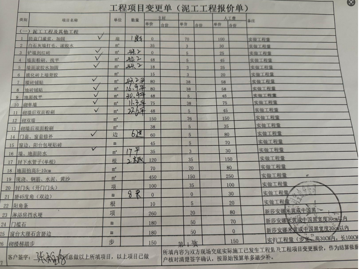 車站北路套內(nèi)28平的房子,簽合同的告知5萬全部裝修完成。在沒有改變在油漆工木工進(jìn)場已經(jīng)付完4.75萬。之后在沒有告知有增項(xiàng)的情況下,欺騙我簽工程項(xiàng)目變更單。項(xiàng)目變更單全部是增項(xiàng)內(nèi)容,簽字時候已經(jīng)全部完成增項(xiàng),簽字時也沒有讓我簽日期?,F(xiàn)在要求我付不知道的3.7萬項(xiàng)目增項(xiàng)費(fèi),不付款就動工。