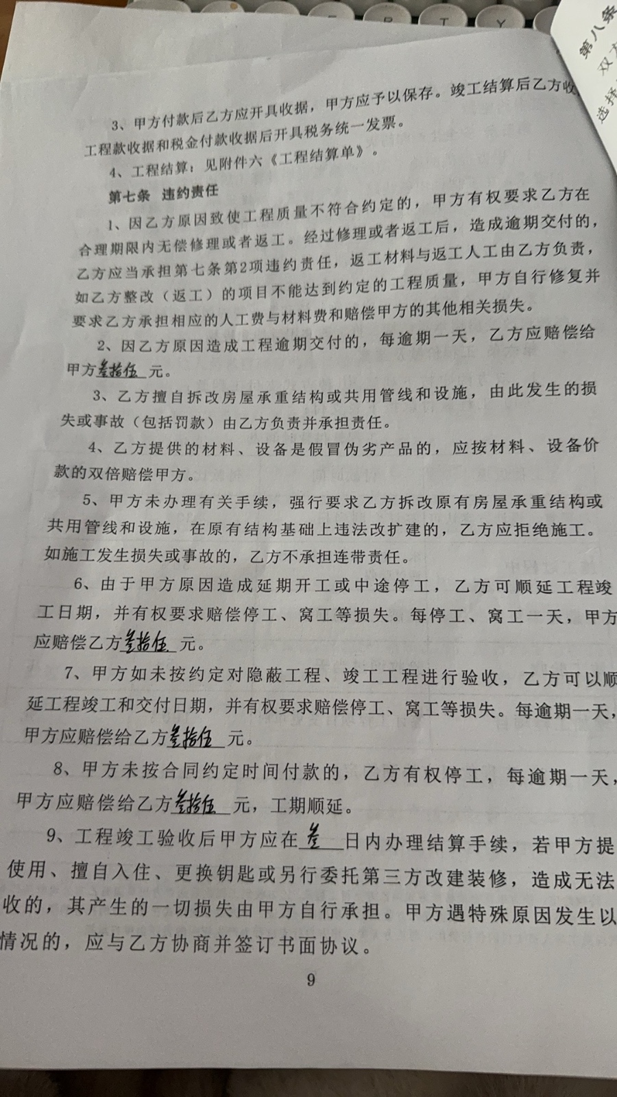 更令人氣憤的是,在合同簽訂內容中規(guī)定,每延期一天,費用為 35 元。這明顯是嚴重的欺詐和欺騙條款。如此低廉的違約費用,對于該公司而言幾乎不會造成任何實質性的經濟損失,這使得他們在施工過程中缺乏足夠的約束,根本不重視工期的按時完成,完全是對我作為消費者權益的漠視。