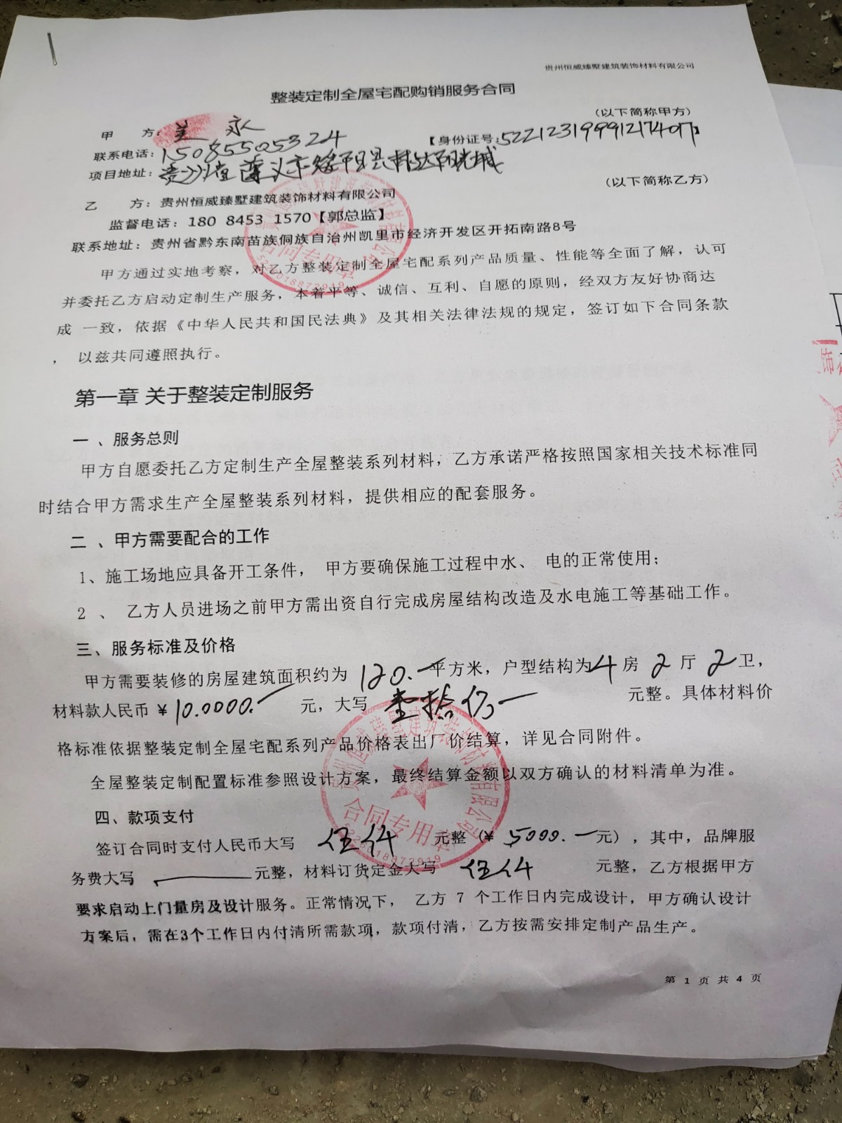 | 投訴類(lèi)型 | 裝修增項(xiàng) | 投訴人 | 吳** | 被投訴單位 | 貴州恒威臻墅建筑裝飾材料有限公司 |