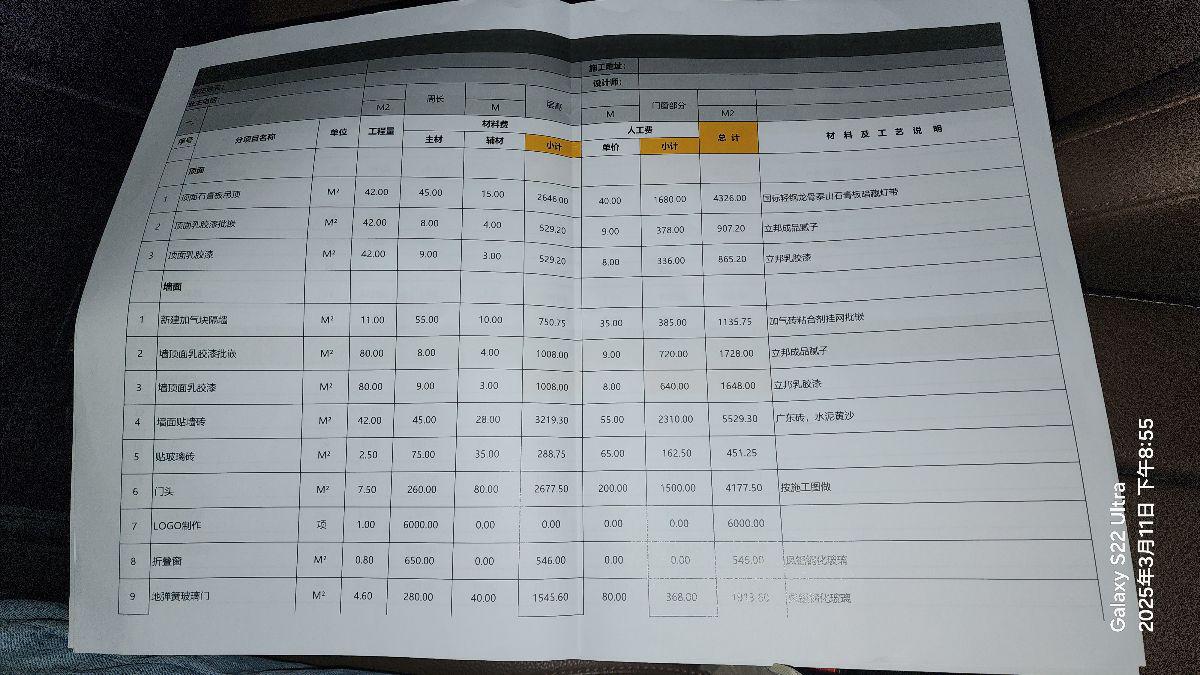 我與上海美新家裝潢有限公司(以下稱對方)于2025年2月4日簽訂商鋪裝修合同!合同為總包閉口合同,我本人提供了施工圖紙,對方根據(jù)我的施工圖紙?zhí)峁┝藞髢r清單,合同約定總價款為53000元(后口頭約定改為5200),并約定了付款節(jié)點,合同明確約定按圖施工,圖紙不變,預算不變,總價款甲方所提供圖紙的所有事項的施工及材料費用,裝修效果達到設計效果的90%以上!