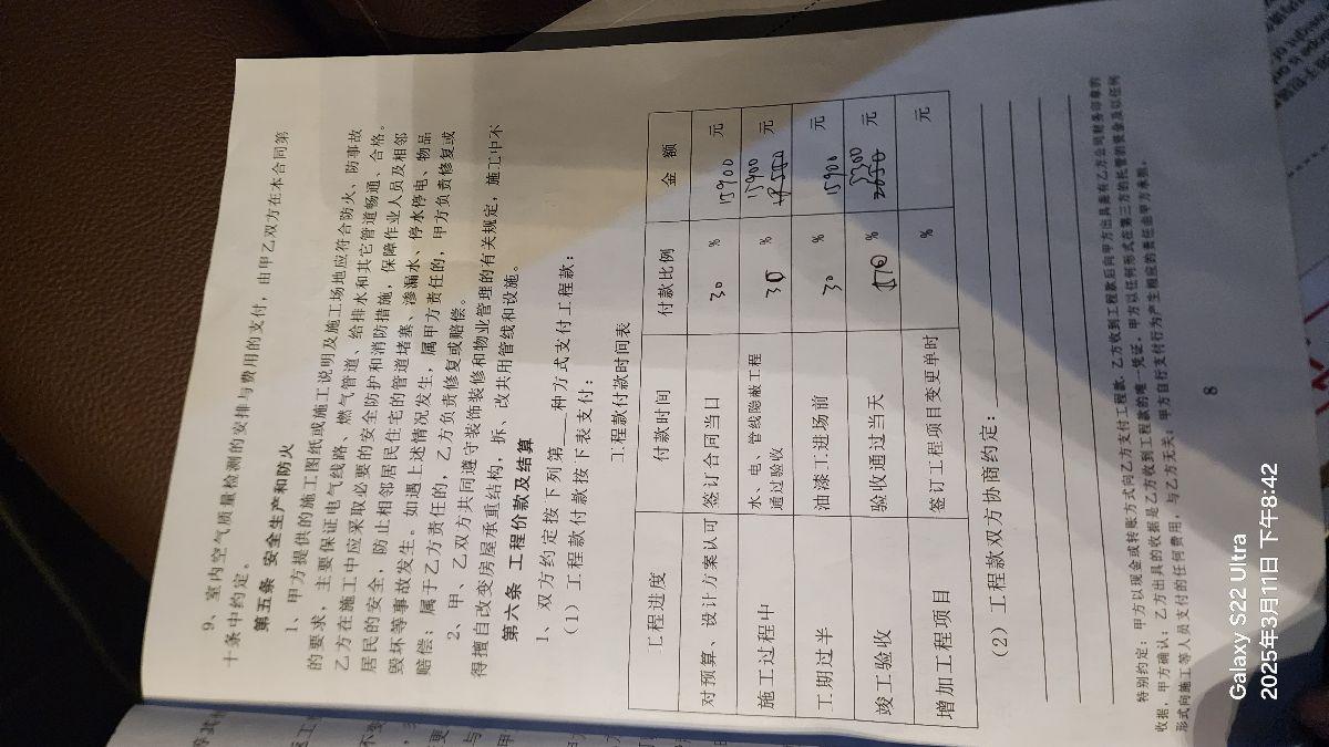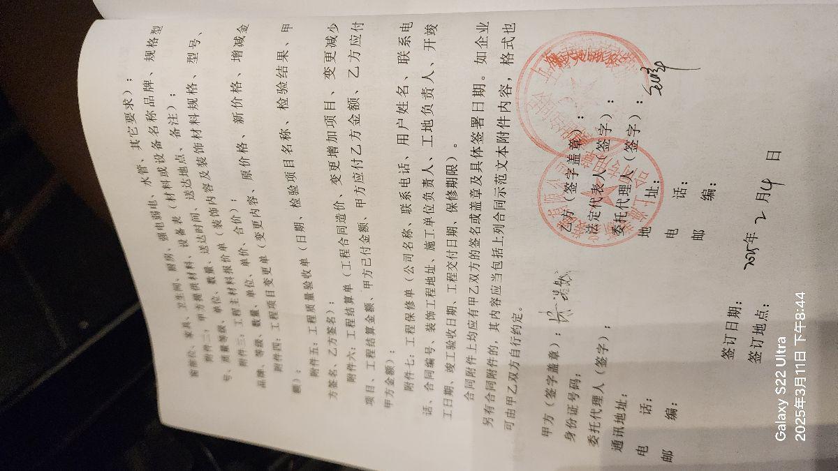 現(xiàn)在本人已經(jīng)支付總費用為33000元,現(xiàn)場實際施工為地磚墻磚拆除(我本人自費800元),水電施工進場(工作未完成),瓦工進場(工作未完成)其他一概未做!