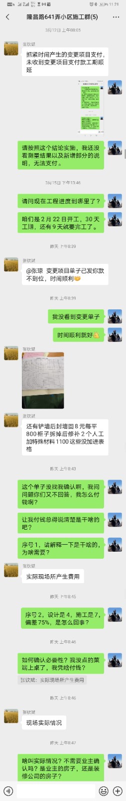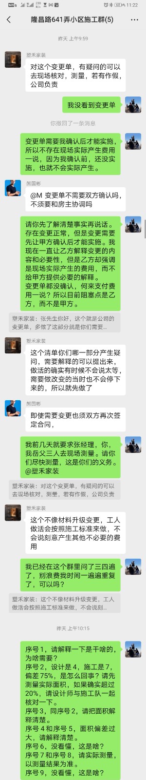 甲方根據(jù)項目進度和合同規(guī)定,如期支付了1期、2期、3期共計95%的裝修款,但是3期款支付后,項目經(jīng)理張欽斌出具了一個增項清單要求甲方支付,否則項目停工,工期順延。而增項清單里的內(nèi)容,乙方并未與甲方進行事前溝通確認。根據(jù)裝修合同使用說明中第十條的規(guī)定,裝修過程中必要的變更和增項,乙方需要在實施前告知甲方,并作為合同附件與甲方辦理書面手續(xù)。現(xiàn)在乙方不僅沒有提前告知,而且在甲方詢問增項內(nèi)容的詳細解釋時,乙方僅以“現(xiàn)場實際發(fā)生的費用”為由簡單答復(fù)并要求甲方付款。甲方與乙方裝修公司的監(jiān)理溝通,監(jiān)理消極處理,不予正面答復(fù),采取拖延策略。