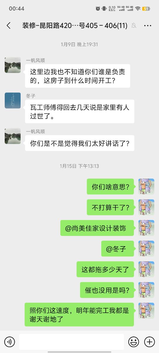 上海揚(yáng)家建筑設(shè)計(jì)裝飾有限公司惡意拖延工期,不按合同辦事。