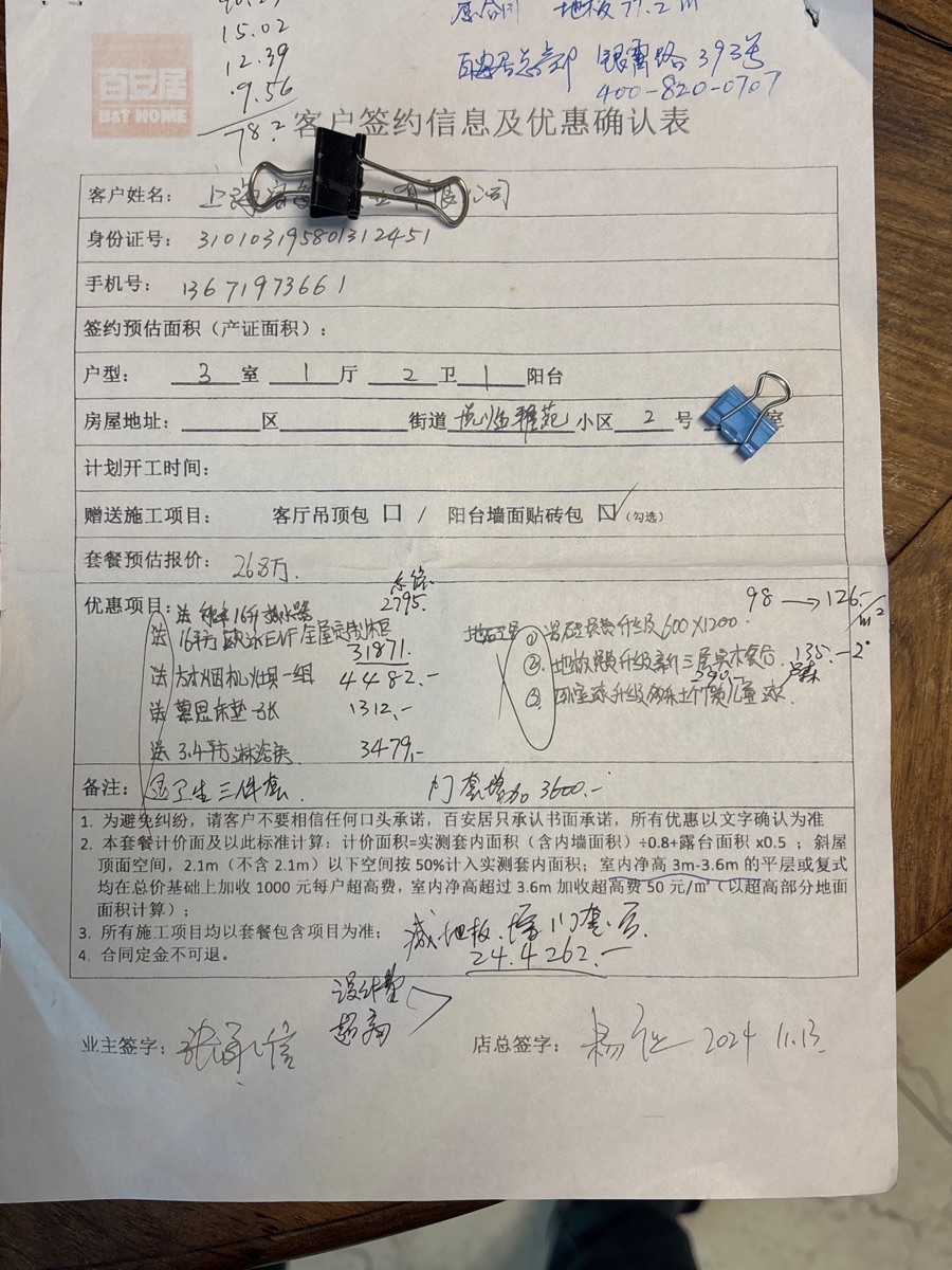 主要糾紛是合同承諾贈(zèng)送的不執(zhí)行,而且在預(yù)算中重復(fù)出現(xiàn),解釋成合同簽訂時(shí)含在折扣里,柜子定制要加收五金配件、抽屜、玻璃門(mén)10000萬(wàn),不給廠家16平方贈(zèng)送價(jià)值,否則廠家不會(huì)要求增加費(fèi)用。另外公司規(guī)定超3米以上收超高費(fèi),而房屋只有2.9米,他也收。收了設(shè)計(jì)費(fèi),沒(méi)有設(shè)計(jì)圖紙,也沒(méi)有簽字確認(rèn)。收費(fèi)打包說(shuō)是個(gè)性化收費(fèi),沒(méi)有明細(xì)。鏟除原頂面及墻面白灰及乳膠漆總面積計(jì)算140.27平方,而原墻面是沒(méi)有白灰涂料的,頂面部分吊頂,實(shí)際鏟除面積43平方米,說(shuō)是系統(tǒng)設(shè)置改不了。地板樣品不中意,同意退,必須在原系統(tǒng)中扣減,包括人工及管理費(fèi)。第一張圖片中送的熱水器、油煙機(jī)灶具、淋浴房都在預(yù)算里出現(xiàn),送的承諾是空的。