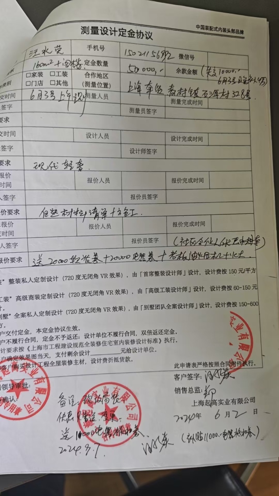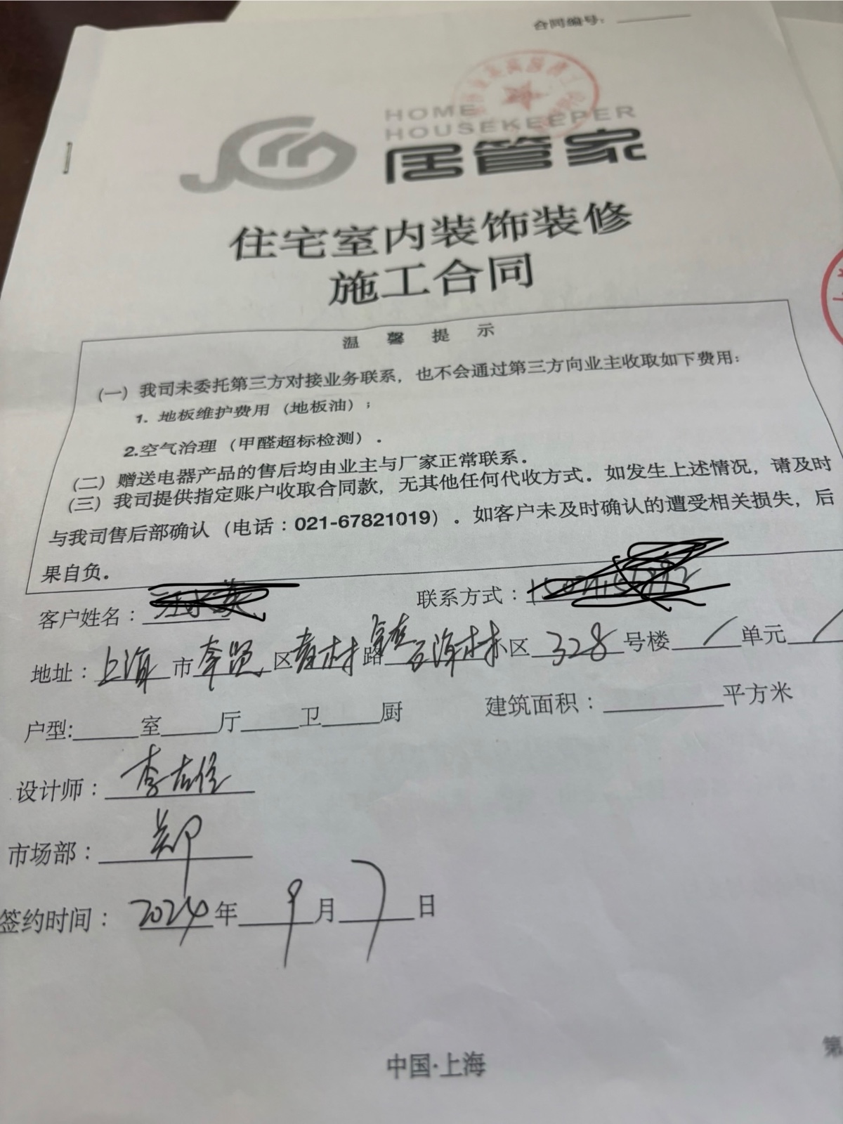 去年5月份在抖音上刷到碳晶板,于是就問了問。后來位于松江的居管家他們公司就打電話來讓我們?nèi)タ纯?。他們那個鄭經(jīng)理接待了我們,說放心我們是大公司中途絕不會亂收費。我家是農(nóng)村自建房,160平,我說水電我們做掉了,其他算算總共需要多少錢。她說現(xiàn)在搞活動交5萬可以送2萬家電2萬軟裝,還有廚房送老板煤氣灶和油煙機??偹阆聛?8萬,包括20平的櫥柜,衛(wèi)生間全部配好。這樣看價格在我們預算內(nèi),我說家里還有個閣樓,因為不清楚多少面積,所以先報2層的價格,用碳晶板,她說預算不可能超過10%。因為宣傳說比油漆便宜,那就付了訂金,我說房子還沒竣工,她說可以活動先訂下來,房子好了再量房簽合同。鄭經(jīng)理說了這個活動,我爸爸覺得這樣可以,房子后面要他們做,付訂金就付五萬好了,因為錢沒帶夠先付了一萬,第二天爸爸去銀行把快到期的存單拿了出來,利息就變成活期。大概7.8月份時他們說可以先報價定合同,后面要裝修了再叫他們開工。報價那天我和爸爸老公一起去的,報價帶閣樓30幾萬,嚇了我們一跳,我說碳晶板不是便宜嗎?這時她才說怎么可能,人工和材料都比外面貴很多,真是無語了。后來項目減到只有頂和墻面,多了一個閣樓就從18萬到30多萬?她說價格貴就把項目減下來,最后只做原來160平,櫥柜沒有,衛(wèi)生間也不做,板材變立邦漆,也要15.16萬.當時就不想合作了,那時知道訂金那邊一定不會全額,最后沒辦法就做了頂墻和部分地板,安裝師傅技術(shù)很好,但板材根本就不是碳晶板,我也溝通說怎么不是碳晶板,對方說家裝都是用裝飾板,碳晶板還要貴的多。10月開工收到建材我又問了一次,還是這么說。感覺不做下去也沒辦法,就聽他們的了吧。最后95000的總價做了部分,所以她說當初的2萬軟裝和2萬電器要減少,老板牌的灶具沒有了,我說這個我同意,雖然說這個送的東西是根據(jù)我付的訂金多少來送的,但考慮現(xiàn)實情況我就同意減少,說只能送6千軟裝和6千電器,我說軟裝我不要,要么給電器券吧,后來協(xié)商到11000元電器券,在這里他們就開始套路我,在后面寫了11000抵扣券,作為普通消費者,不知道你在里面做文字游戲,鄭經(jīng)理從頭至尾沒有講過這個券是按比例的折扣券,就說給你多少券拿多少電器,我當初還問了一句,你們送的家電不會比店里貴很多吧,她說不會,雖然我不相信,但反正送的貴一點也接受。年前裝修好了后,也沒有跟我提電器券的事,3月份我們搬家了.我主動提起要電器拿空調(diào),最后他們說是按比例的抵掉部分的券,而且比例是他們定的,電器價格也比我們自己去買貴的多,可以說不用這個他們所謂的券,我也能買得到。然后就說什么線上線下東西不一樣啥的,一幫騙子。最后還說是我們理解錯誤。還到網(wǎng)上去找什么是抵扣券,難道我們老百姓都是律師嗎?我們都是普通人?。∧銈冞@么大個公司送不起就不要送,拿這些噱頭來欺騙消費者,靠欺騙的公司沒有未來?這樣的行為就沒人來管嗎?
