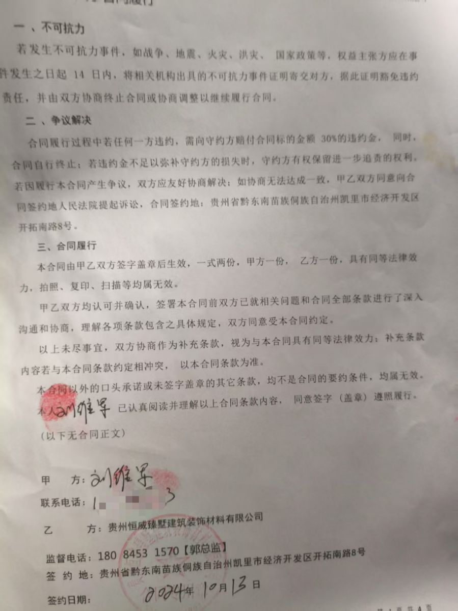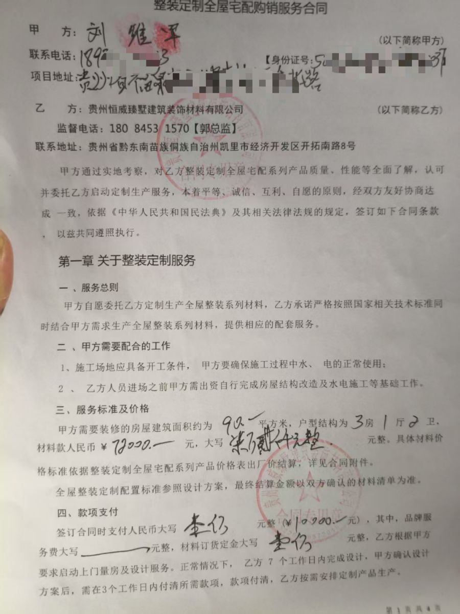 | 裝修面積 | 100m2 | 投訴人手機 | 1652547**** | 被投訴人手機 | 1808453**** |