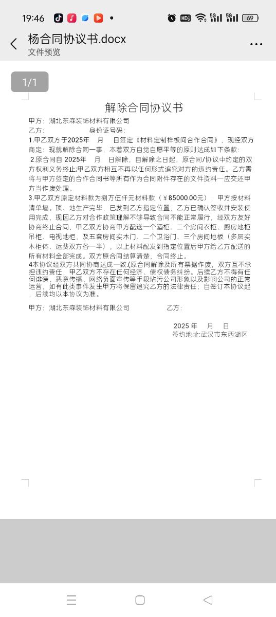 4:我現(xiàn)在被(湖北東森裝飾材料有限公司)合同套路了我們一家半輩子積累起來積蓄,現(xiàn)在多被他們騙走8萬5千,,這家公司也是詐騙公司,請(qǐng)廣大網(wǎng)友認(rèn)準(zhǔn)不要上當(dāng),還請(qǐng)當(dāng)?shù)毓ど坦芾砭植槊?,這些錢多是問親戚朋友銀行借來的,我現(xiàn)在已經(jīng)上當(dāng) ,天天欲哭無淚,在此表達(dá)我個(gè)人上當(dāng)經(jīng)過告知廣大網(wǎng)友全屋定制純粹套路詐騙割韭菜,不要上當(dāng)天上不會(huì)掉餡餅只有陷阱,以請(qǐng)當(dāng)?shù)馗車?yán)查這家公司,希望當(dāng)?shù)毓ど坦芾砭?,市?chǎng)監(jiān)督管理局能為民除害,幫助更多的人追回?fù)p失,也要嚴(yán)查這家公司,他們不當(dāng)社會(huì)敲詐百姓,還帶有偷稅漏稅,希望廣大網(wǎng)友看到能幫忙轉(zhuǎn)發(fā),點(diǎn)贊,以免更多的人去上當(dāng),謝謝大家[合十][合十][合十][合十]