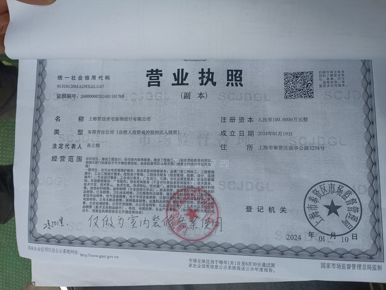 | 注冊地址 | 許可項目:建設工程設計;住宅室內(nèi)裝飾裝修;建設工程施工。(依法須經(jīng)批準的項目,經(jīng)相關部門批準后方可開展經(jīng)營活動,具體經(jīng)營項目以相關部門批準文件或許可證件為準)一般項目:住宅水電安裝維護服務;家具安裝和維修服務;金屬門窗工程施工;工程管理服務;工業(yè)工程設計服務;規(guī)劃設計管理;工程技術服務(規(guī)劃管理、勘察、設計、監(jiān)理除外);專業(yè)設計服務;工業(yè)設計服務;廣告設計、代理;會議及展覽服務;企業(yè)形象策劃;市場營銷策劃;廣告制作;信息咨詢服務(不含許可類信息咨詢服務);技術服務、技術開發(fā)、技術咨詢、技術交流、技術轉讓、技術推廣;建筑裝飾材料銷售;金屬材料銷售;建筑材料銷售;涂料銷售(不含危險化學品);家具銷售;家具零配件銷售;針紡織品銷售;燈具銷售;衛(wèi)生潔具銷售;衛(wèi)生陶瓷制品銷售;建筑陶瓷制品銷售;門窗銷售;家居用品銷售;電氣設備銷售;電子專用設備銷售;儀器儀表銷售;通訊設備銷售;家用電器銷售;日用木制品銷售;照明器具銷售;金屬制品銷售;橡膠制品銷售;塑料制品銷售;光學玻璃銷售;日用百貨銷售;辦公用品銷售;禮品花卉銷售;工藝美術品及禮儀用品銷售(象牙及其制品除外);電線、電纜經(jīng)營;五金產(chǎn)品零售。(除依法須經(jīng)批準的項目外,憑營業(yè)執(zhí)照依法自主開展經(jīng)營活動) | ||