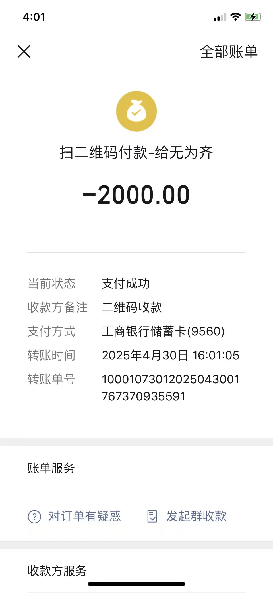 我以為這樣就該按部就班地繼續(xù)下去了吧,沒想到被他們砸開的廁所門洞城管來了說不允許,必須要重新堵了。我讓趙勇找?guī)煾祦碜?,他說要加錢,我說,本來總費用里就包含堵舊門洞了,他就說要加錢,因為城管要求盡快堵上,就不想再跟他理論,他要求防盜門也交給他來找人安裝,兩項共計2000元即可他即可安排。我想防盜門找誰做都是做,讓他掙包煙錢也無可厚非。就把2000元掃了他給的微信收款二維碼付了,收錢碼人叫周齊。