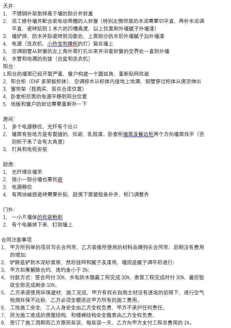 (7)說雖然水電什么包,插銷開關(guān)不包,踢腳線不包等,都是我第一次見識的。