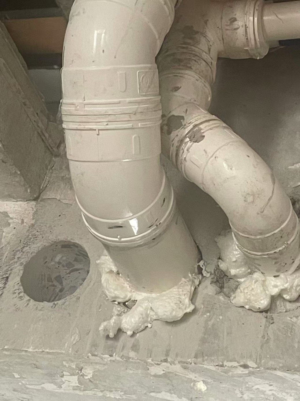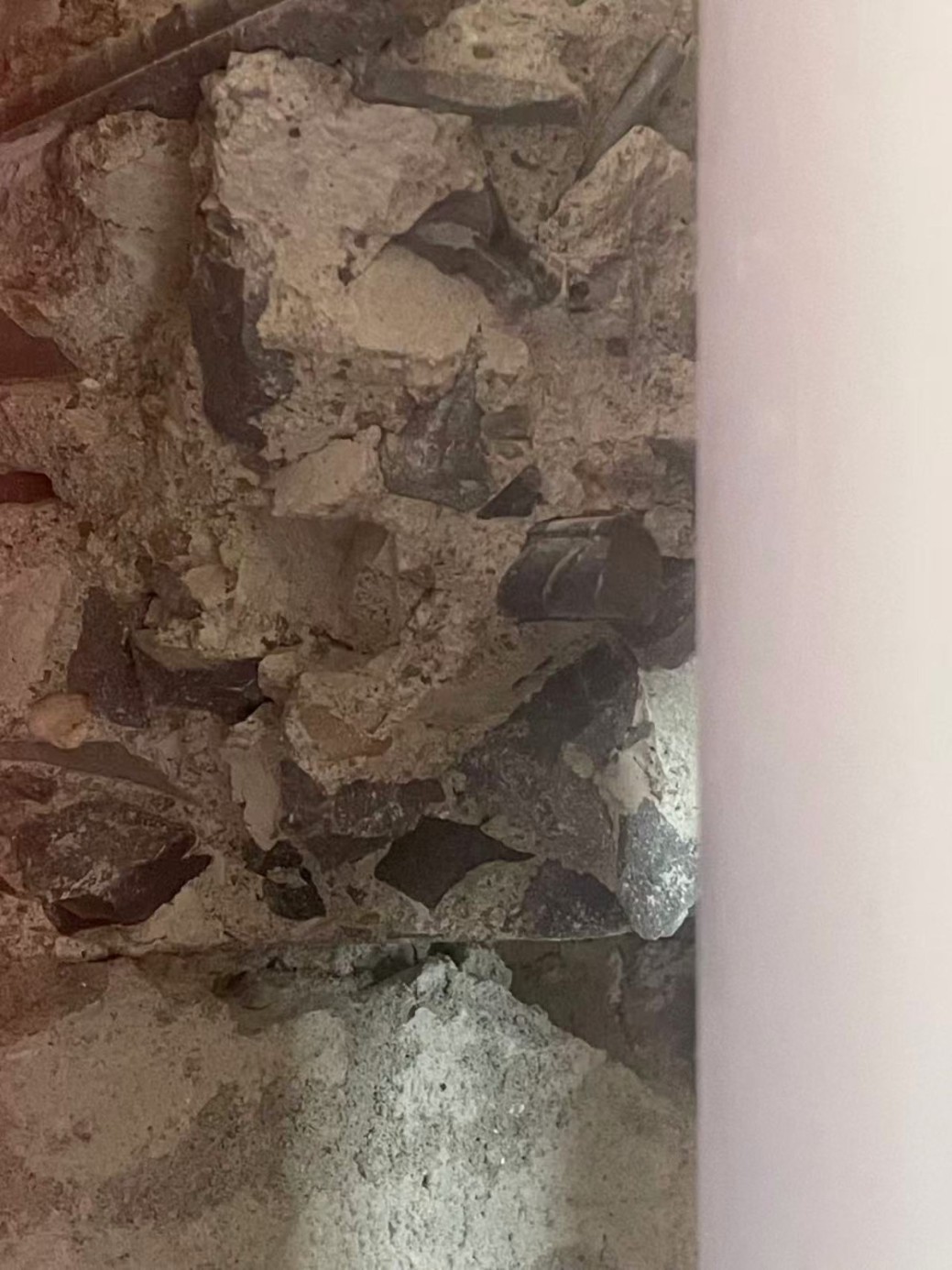 1,野蠻施工,一樓一根主梁穿洞直徑超110厘米,另一根公共主梁立面損壞超梁寬度1/5(梁寬度200cm).二樓北房間在排電線中,梁的下邊1/5處損壞嚴重。三樓衛(wèi)生間在排管道中,切斷兩根橫梁。我們認為以上施工對房屋安全造成嚴重危害。施工工程部稱沒有大問題,拒絕修復。