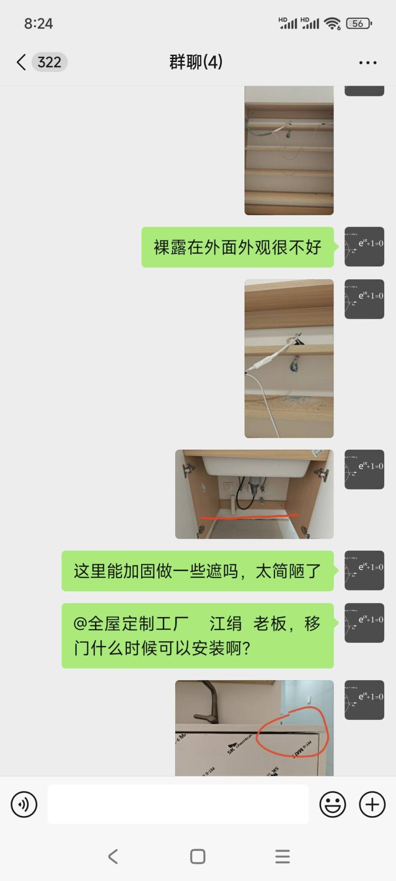 2.質(zhì)量問題:水槽下面沒有采用鋁箔材質(zhì);設(shè)計(jì)缺陷導(dǎo)致門無法開啟;暴力施工,破壞地板;洗臉盆制作簡(jiǎn)單粗糙。反饋問題后,三個(gè)多禮拜遲遲沒有響應(yīng)。