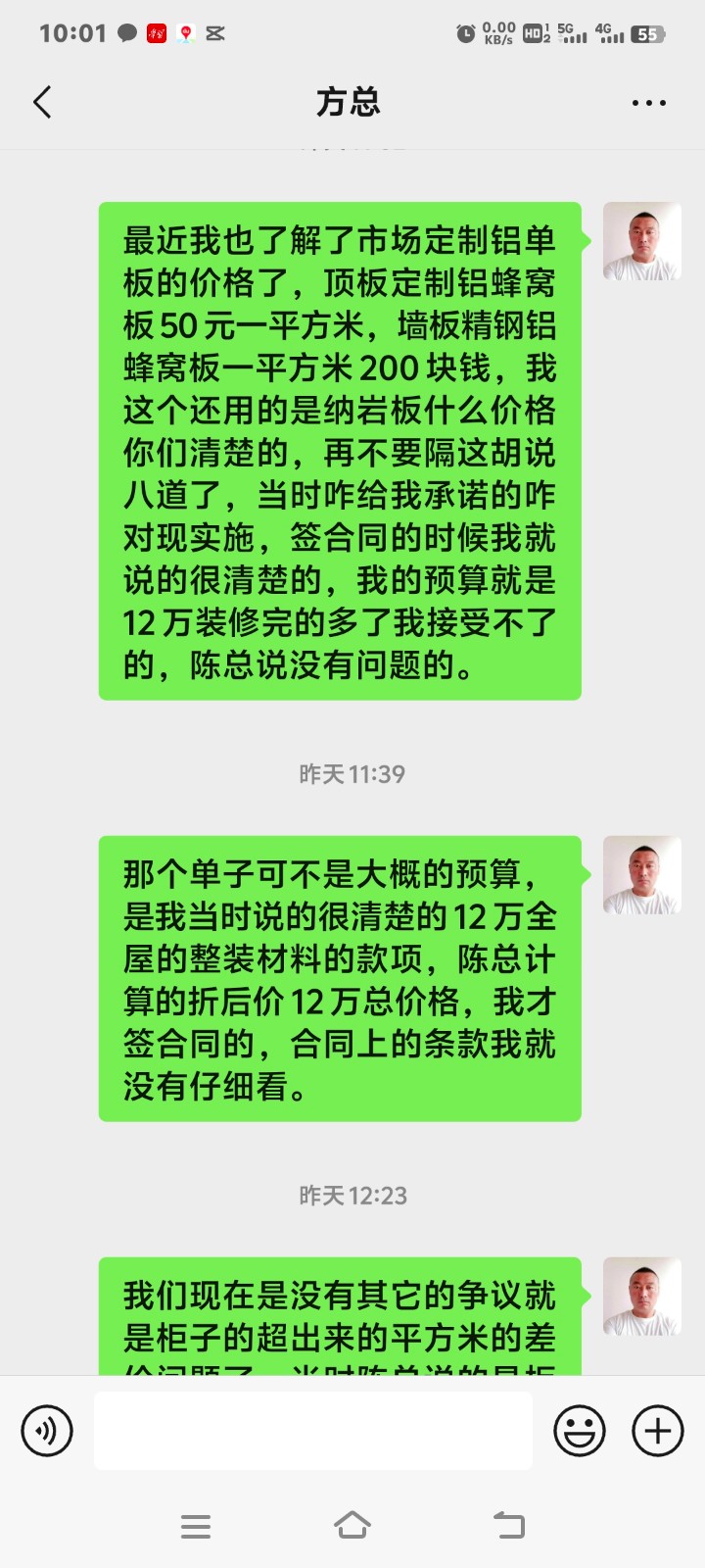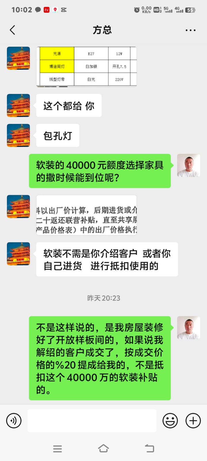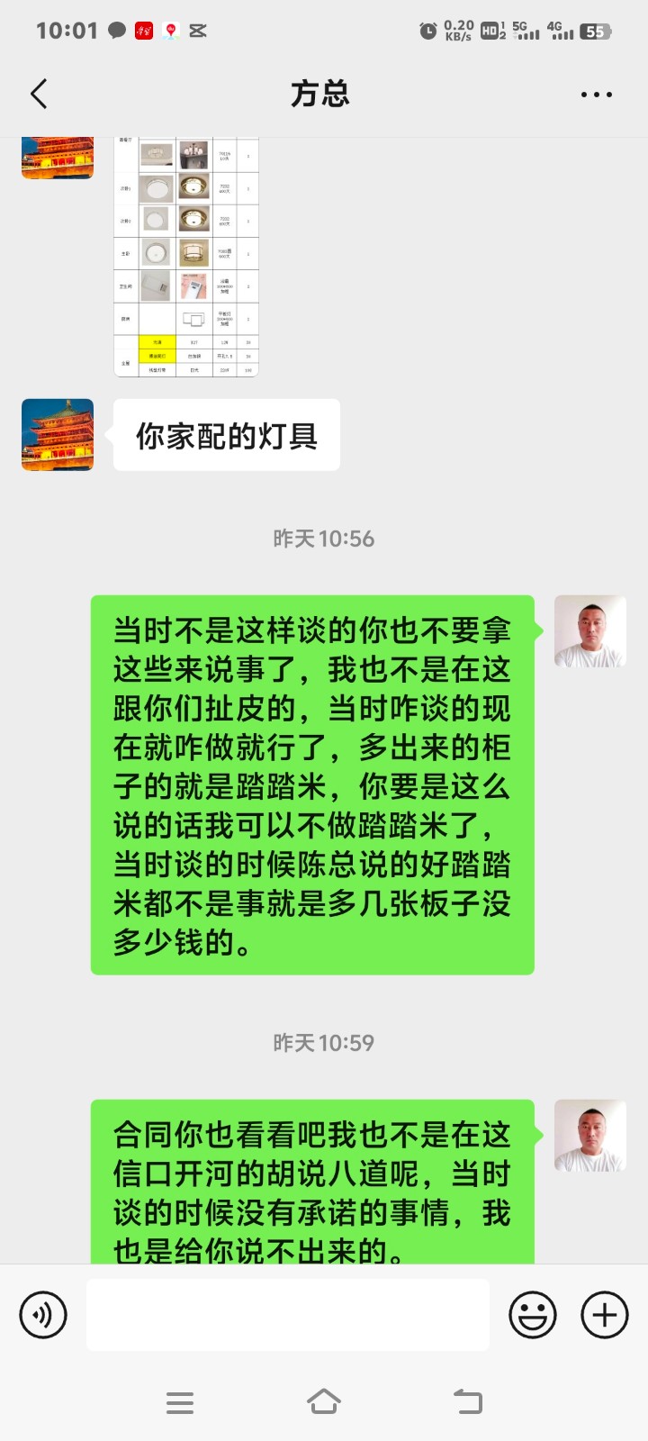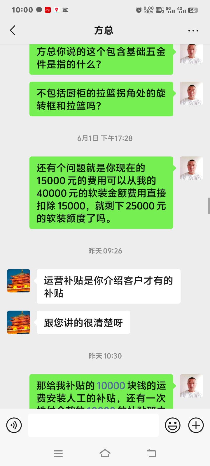 2:你是還沒有去他們那里考察,他們會(huì)有一個(gè)客服三頭兩天很熱情的給你打電話,說的是天花亂墜你去考察簽合同就報(bào)銷來回路費(fèi),把你騙過去以后,會(huì)帶你看他們的樣板間,他們表面都是一種假設(shè),就是忽悠普通老百姓心理,后來把你帶到辦公室,給你看使用材料后,給你預(yù)算計(jì)劃約定好定制項(xiàng)目后,以12萬元的總價(jià)格全款交付后,就拿出合同也不講解合同上的細(xì)節(jié)內(nèi)容,就在指定位置催促讓你簽字按手印,普通老百姓就不會(huì)再去看他那合同,等你簽完字后,他們的合同就變成采購合同,一切的口頭承諾約定好的項(xiàng)目,合同上一條都沒有寫進(jìn)去,后期都不會(huì)兌現(xiàn),他們的材料清單上面的價(jià)格比市場價(jià)格足足貴5-6倍,他們會(huì)發(fā)點(diǎn)材料給你,到時(shí)候運(yùn)費(fèi)輔材,人工費(fèi)他們一概不管,叫你自己處理就是忽悠,等你發(fā)現(xiàn)自己被騙找他們理論,他們就推脫以那份,做了文字游戲的定制采購合同為準(zhǔn),當(dāng)時(shí)約定好的12萬元定制全款,變成采購材料的預(yù)付款了。