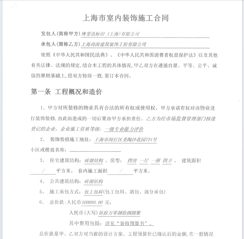 | 投訴類型 | 裝修增項 | 投訴人 | 周** | 被投訴單位 | 上海尚海建筑裝飾工程有限公司 |