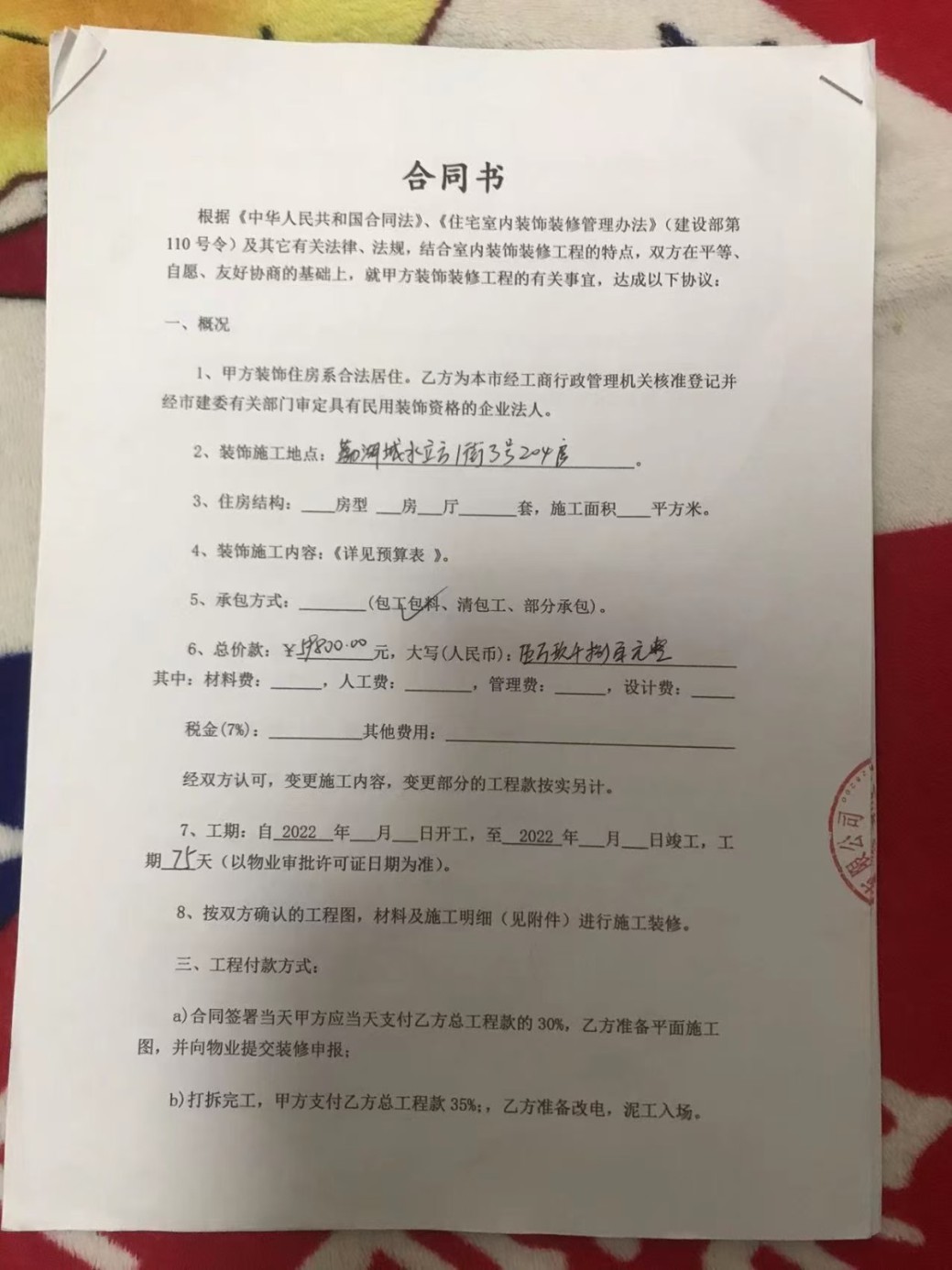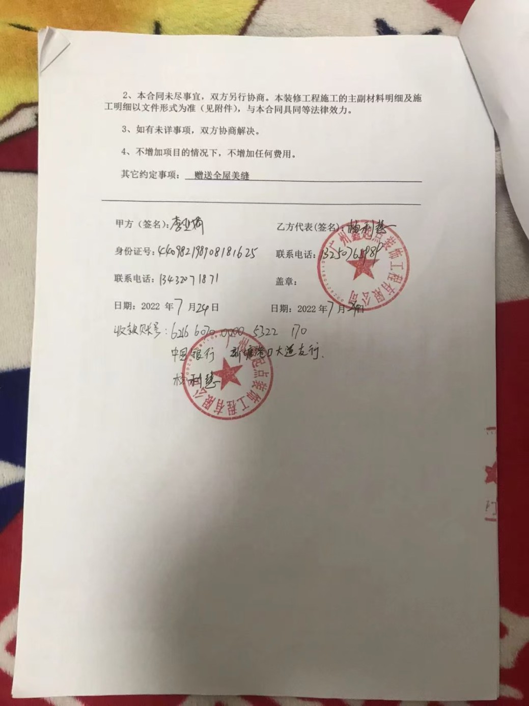 | 裝修面積 | 52m2 | 投訴人手機 | 1343207**** | 被投訴人手機 | 1325076**** |