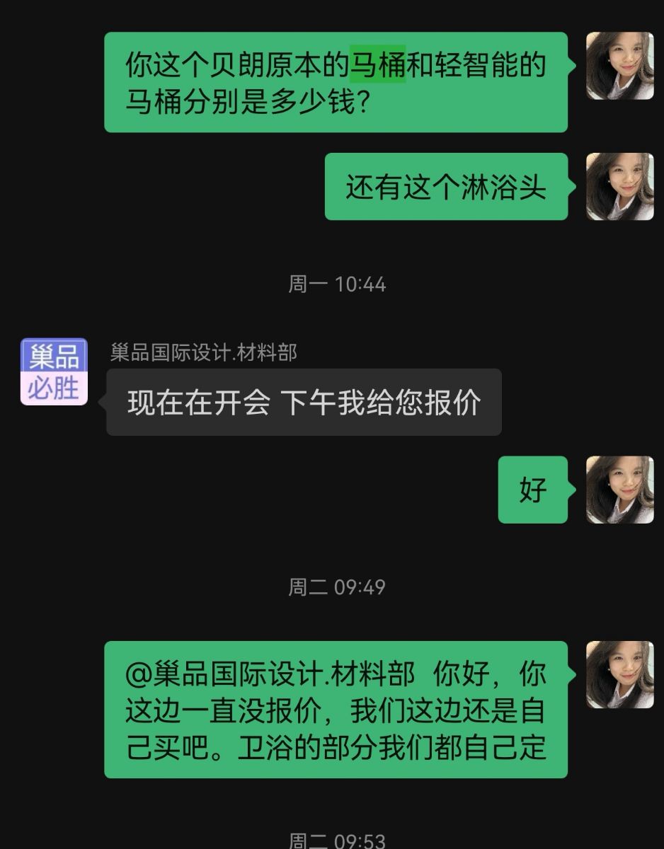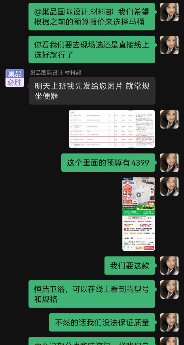 2、衛(wèi)浴產(chǎn)品標(biāo)價(jià)4399,恒潔套裝,但是拿貝朗糊弄我們,貝朗是貼牌生產(chǎn)的。說是4399可以拿到和店里4399一樣的產(chǎn)品,但是拿坐便器糊弄我們,4399,智能馬桶都可以買了。并且簽單之前我們說過要智能馬桶的。