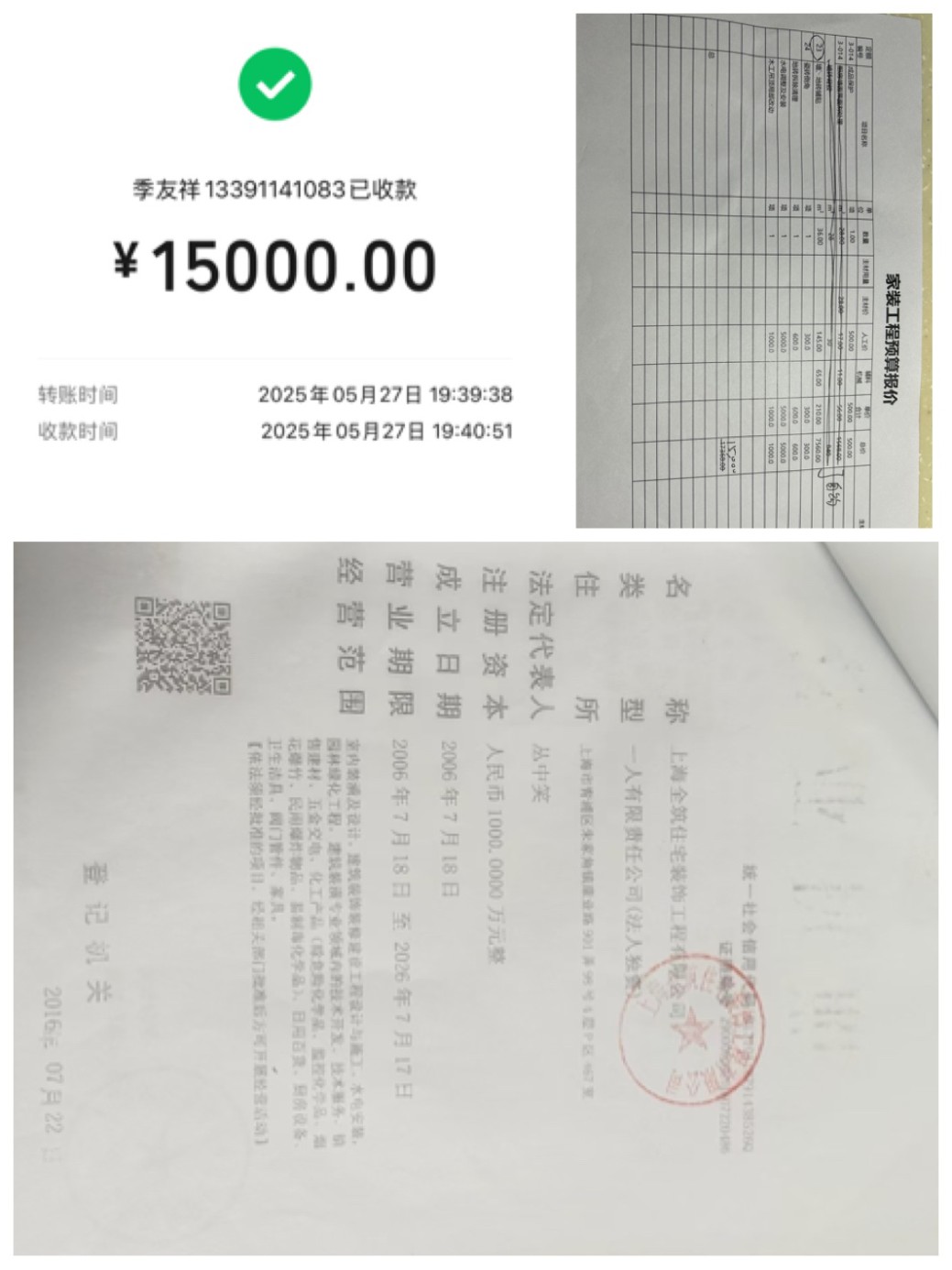 4, 自6月4日起找季友祥隊(duì)長,多次聯(lián)系再也無法聯(lián)系上。6月4日起到目前己停工18天。 造成收取全款、中途撤出、爛尾的實(shí)際局面。