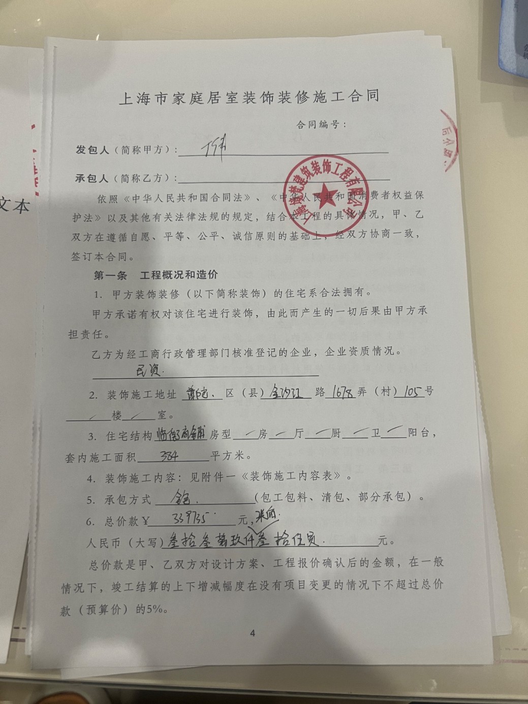 | 裝修面積 | 300m2 | 投訴人手機(jī) | 1361175**** | 被投訴人手機(jī) | 1391649**** |