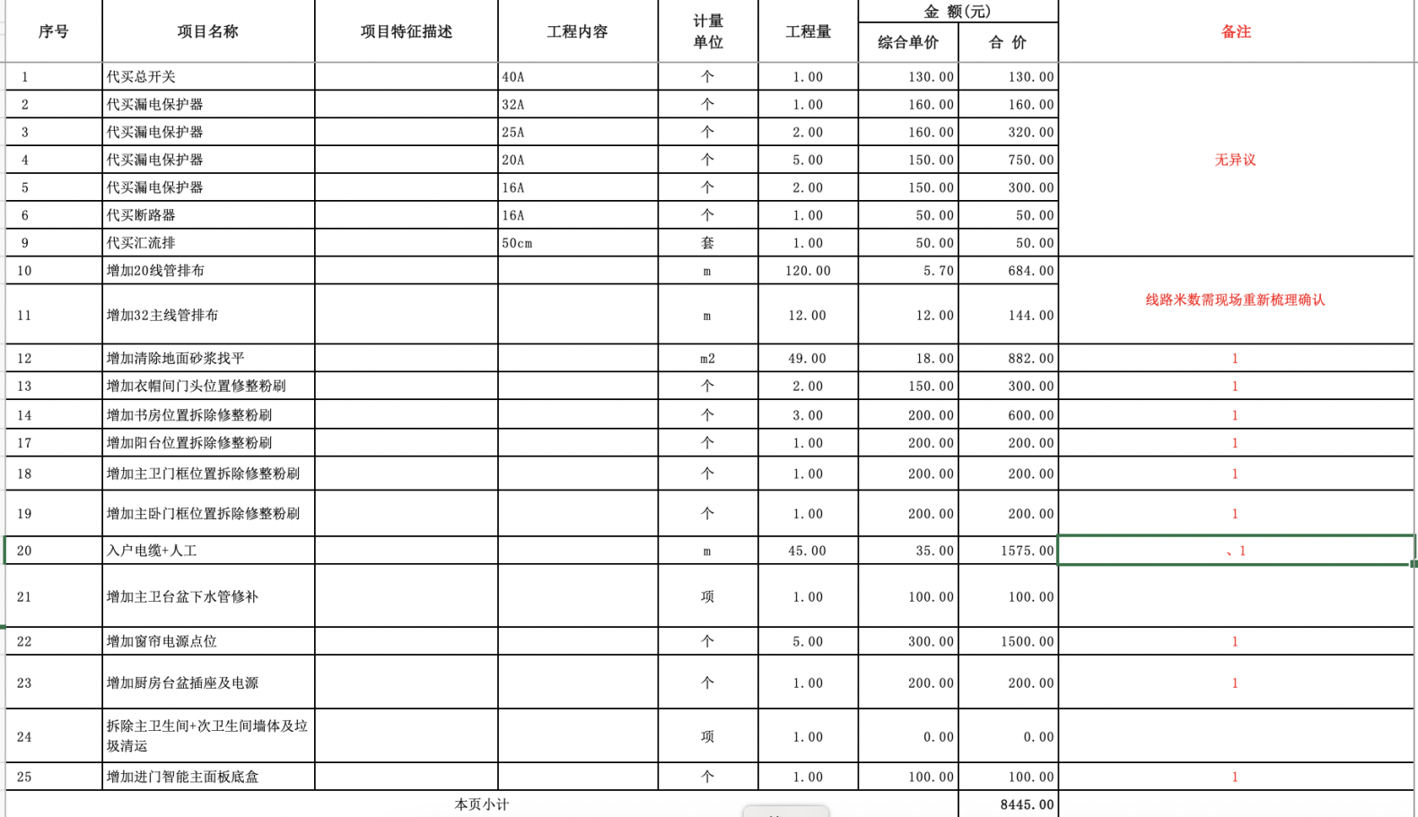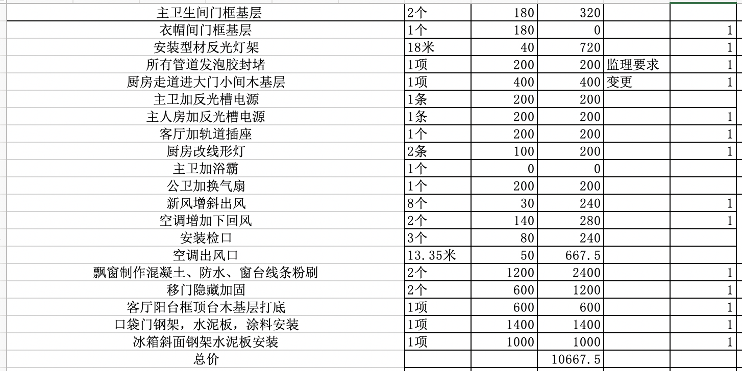 1.去除與裝修合同沖突的增項(xiàng)部分,但是對方認(rèn)為增項(xiàng)部分都是合理的,要求我去現(xiàn)場核對。但是我覺得基于這份增項(xiàng)討論時沒有意義的。