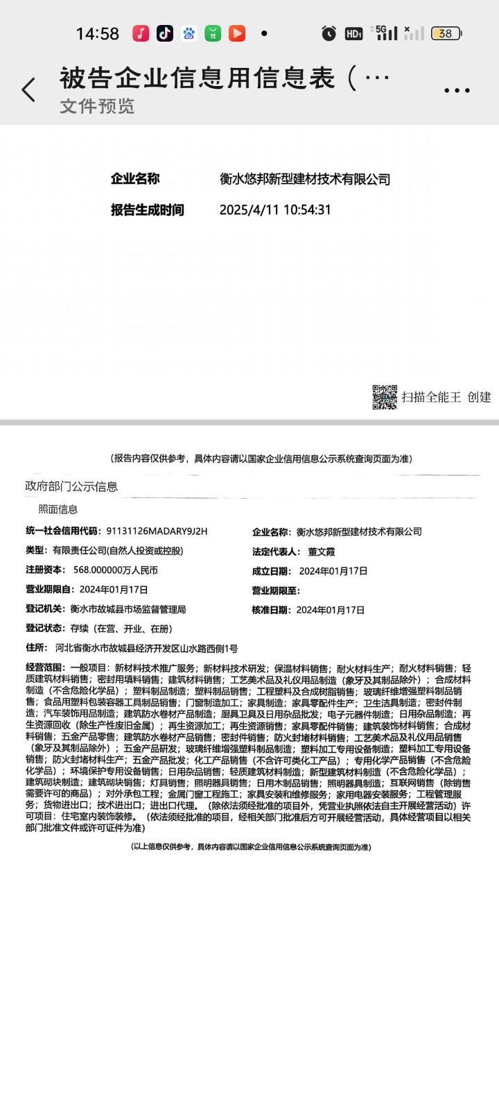 | 投訴類型 | 合同糾紛 | 投訴人 | 劉** | 被投訴單位 | 衡水悠邦新型建材技術(shù)有限公司 |