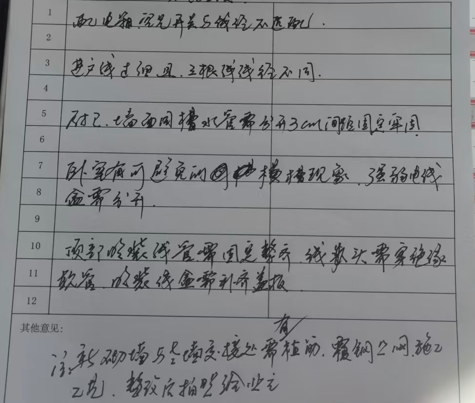 水電施工就未按標(biāo)準(zhǔn),業(yè)主只能另外花錢求助監(jiān)理,目前來看過3次,每次都能提出好幾條整改意見。除了涉及安全問題的要求裝修整改,剩下的大部分意見業(yè)主都未要求裝修公司整改。