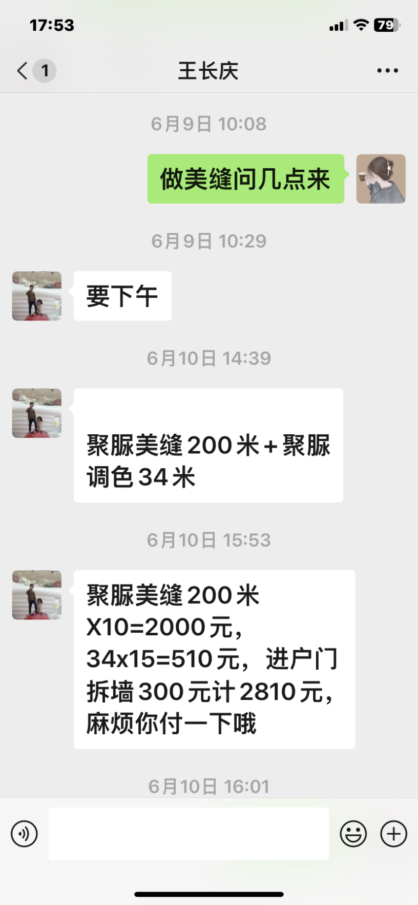 第三,美縫不寫進(jìn)合同,跟我說(shuō)不包含的,當(dāng)時(shí)說(shuō)的也不是這樣,讓把監(jiān)控調(diào)出來(lái),公司又說(shuō)給按照一個(gè)成本價(jià)給,價(jià)格是你們自己定的咯,想多少就多少