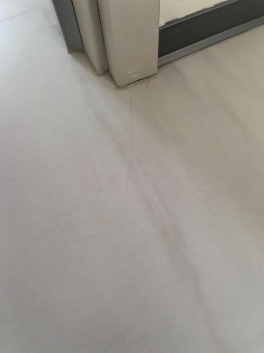 1、所有切割過的地磚均出現(xiàn)開裂(即每個房間門框處和陽臺衛(wèi)生間的門框處)