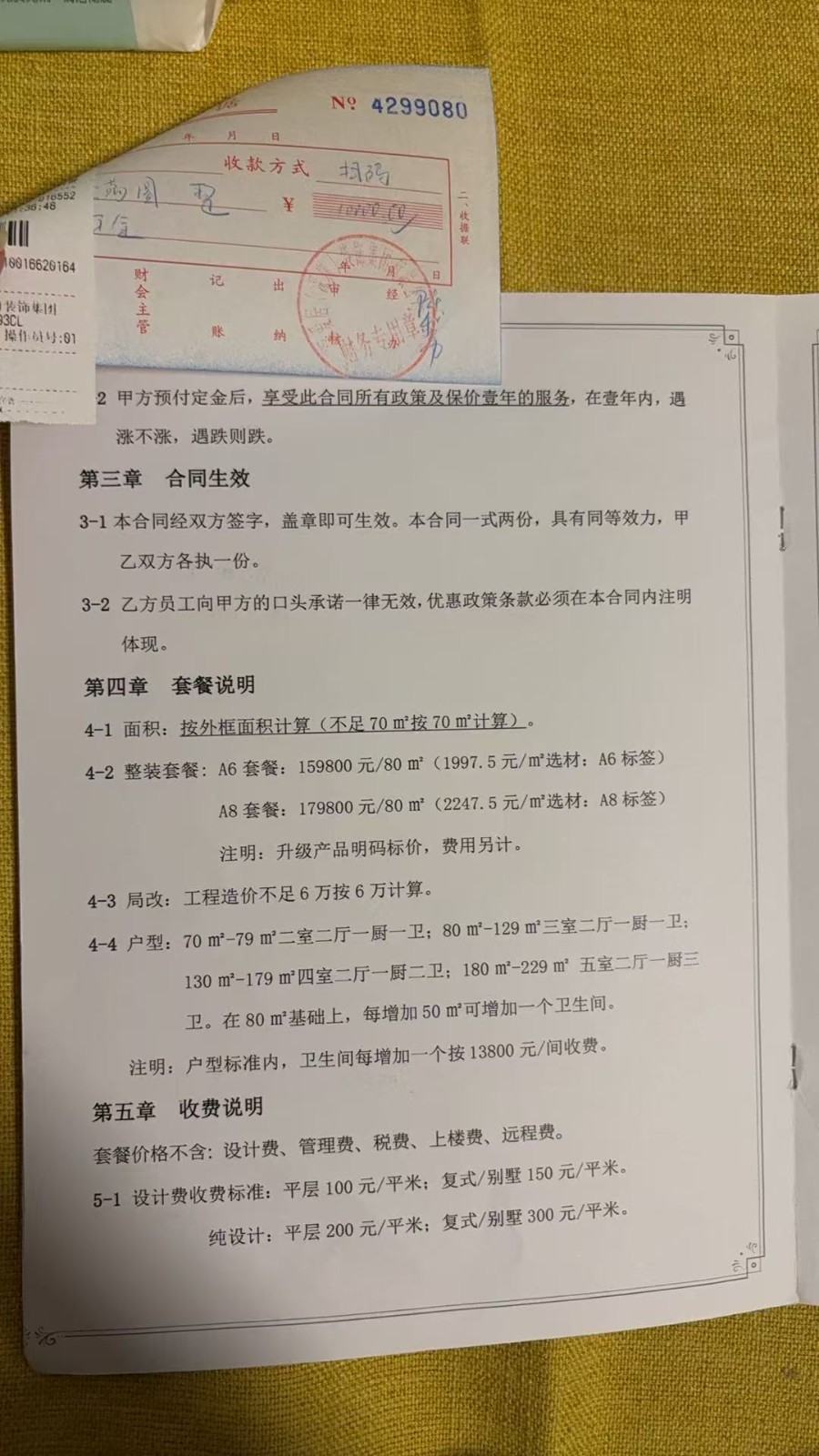 為了讓我徹底放心,他們甚至請(qǐng)出了號(hào)稱是公司合伙人的李總,一起商討裝修總價(jià)。在他們營(yíng)造的這種 “誠(chéng)意滿滿” 的氛圍下,我一時(shí)沒(méi)了主意,稀里糊涂地就簽下了樣板房合同,還當(dāng)場(chǎng)支付了 1 萬(wàn)元定金??蓺獾氖?,他們只給了我一張收據(jù),并沒(méi)有提供發(fā)票。