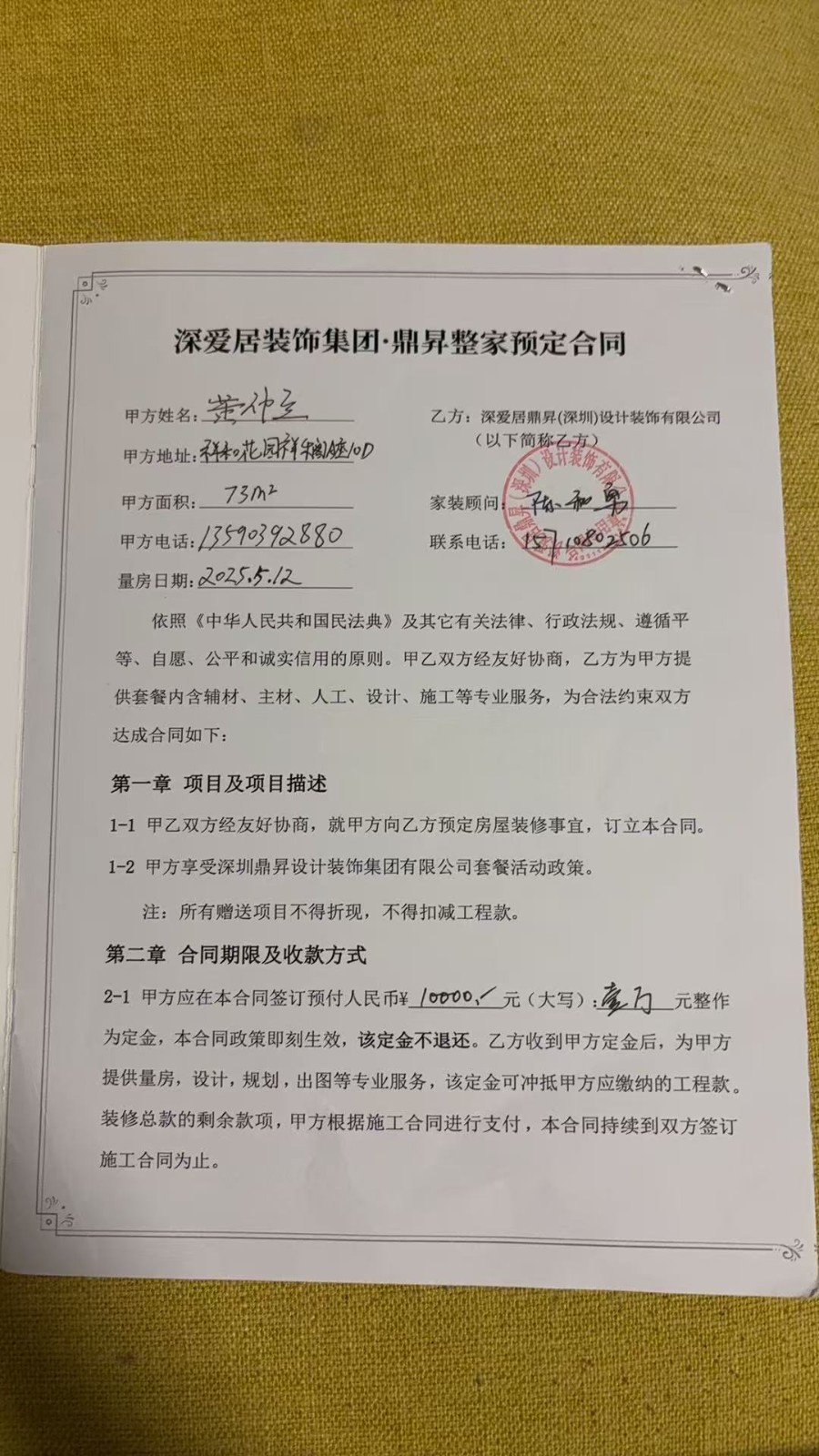 2025 年 5 月,因家中裝修需求,我在土巴兔平臺(tái)搜索相關(guān)信息。平臺(tái)推薦了幾家宣稱能免費(fèi)量房、出方案的公司,其中,深愛(ài)居鼎昇(深圳)設(shè)計(jì)裝飾有限公司的銷售武邑,以極高的熱情頻繁與我聯(lián)系。她不厭其煩地介紹公司情況,以及各類裝修套餐,言辭間滿是對(duì)公司服務(wù)、質(zhì)量和口碑的夸贊。
