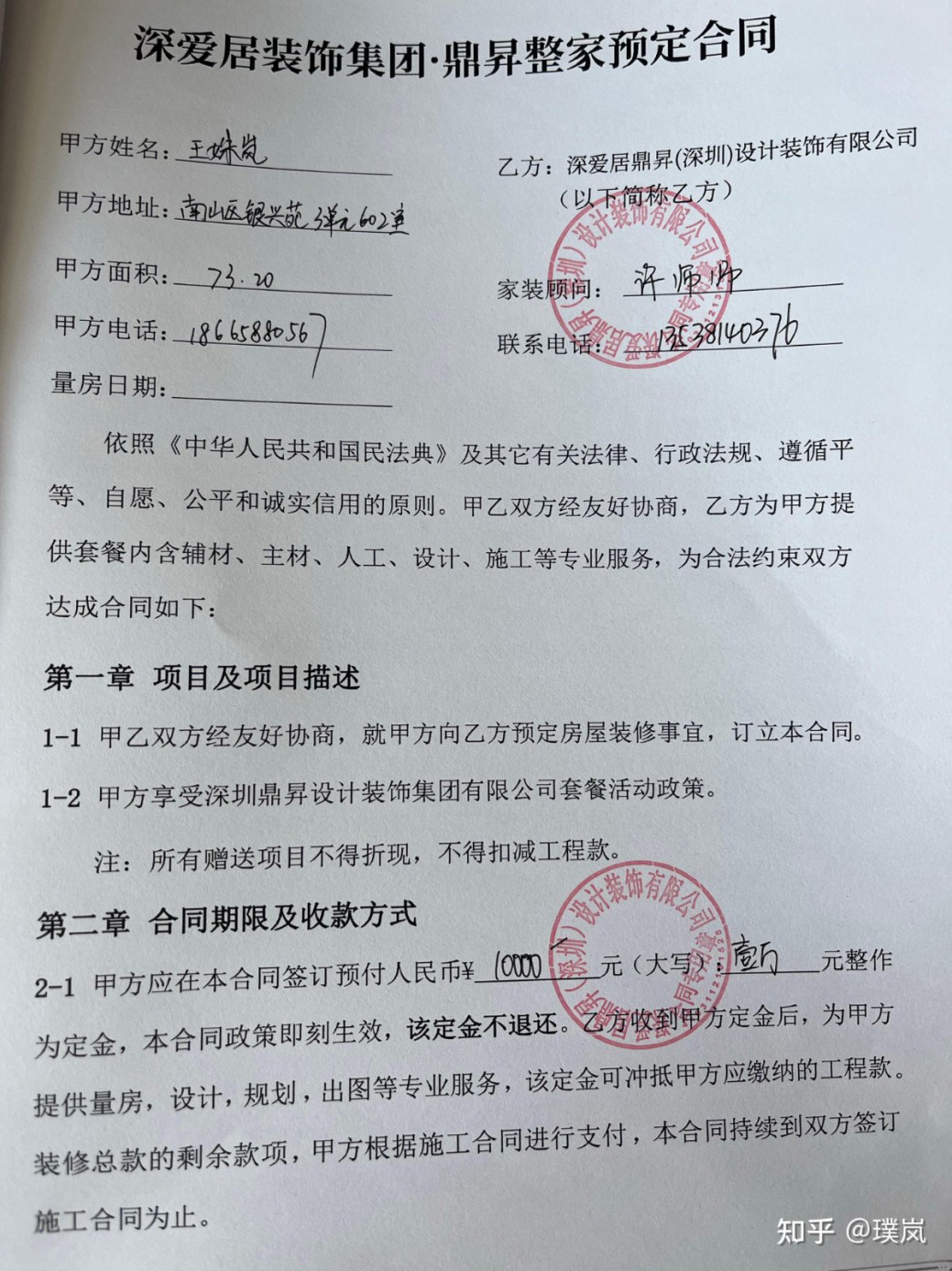 2025 年 5 月,我在各平臺(tái)網(wǎng)站搜索相關(guān)裝修相關(guān)情況,接著深愛居鼎昇(深圳)設(shè)計(jì)裝飾有限公司客戶銷售經(jīng)理打電話給我介紹公司及相關(guān)裝修套餐。三番五次的聯(lián)系后架不住對(duì)方反復(fù)請(qǐng)求,想著“給個(gè)機(jī)會(huì)”,沒成想這成了我最懊悔的選擇。