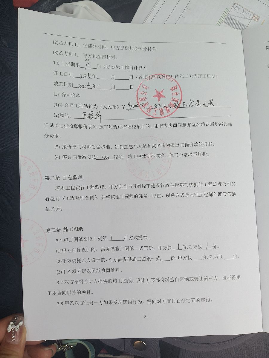 而當我們發(fā)現(xiàn)合同中這些問題的時候,對方宣稱不用看合同,他們絕對是先施工后付款,不斷誘導我們簽合同。就這樣進入一個圈套.