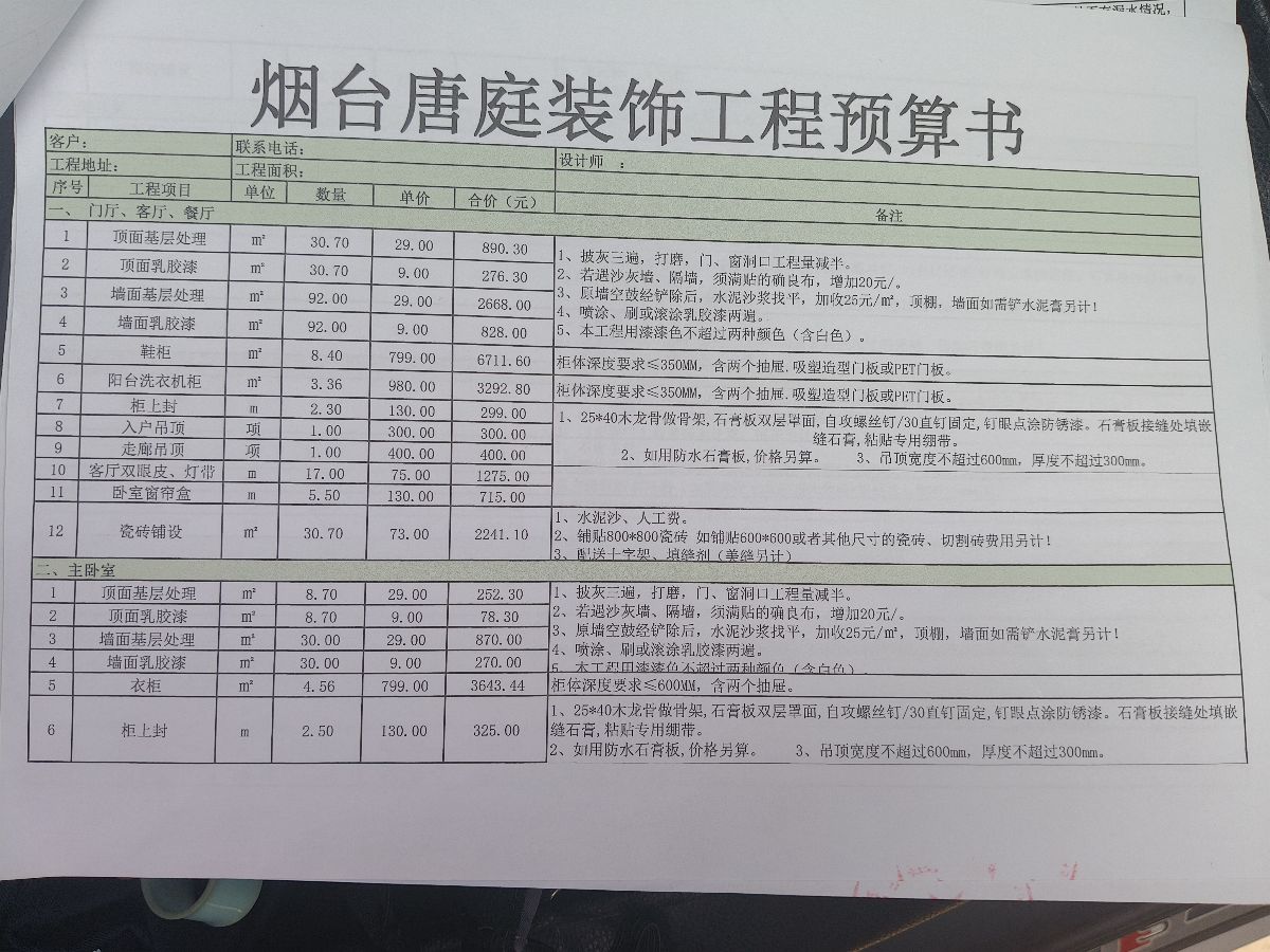 1.今年3月份與煙臺唐庭建筑工程有限公司簽訂裝修合同,簽約前多次打電話虛假宣傳公司實力和裝修質(zhì)量,后得知此公司只有他們夫妻二人,無工長,無監(jiān)理