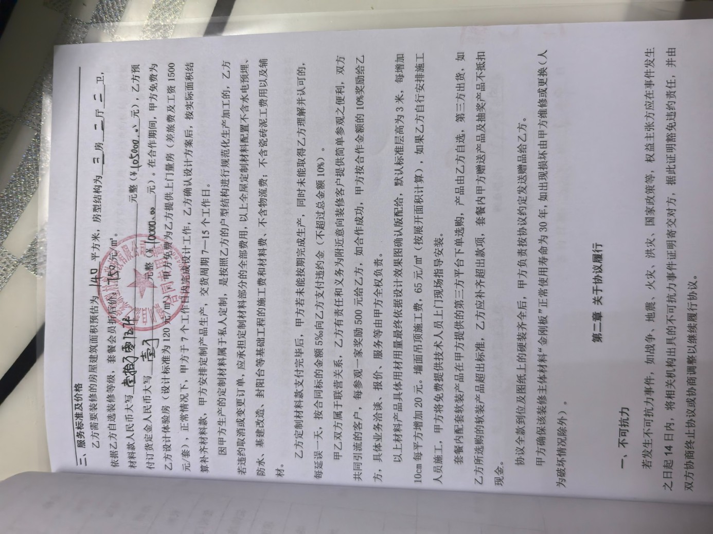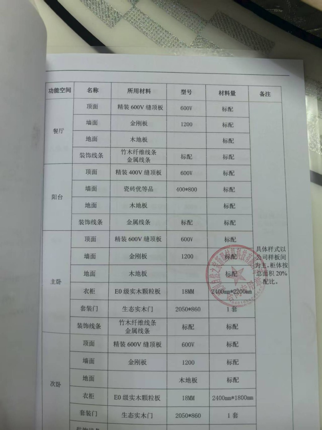 5月4日,我和家人前往考察,業(yè)務經(jīng)理曹總監(jiān)熱情接待。他力推材料合規(guī)、價格低于出廠價,還展示樣板房,抓住我圖省事的心理承諾:除水電外全包(含吊頂墻面、瓷磚、衣柜櫥柜、衛(wèi)浴、燈具等),簽約送家電、物流、運費、人工費補貼,若作為樣板房開放3個月,每參觀一次給500元,介紹客戶有10%返利。最終8萬元合同,當日就支付了1萬元合作意向金。