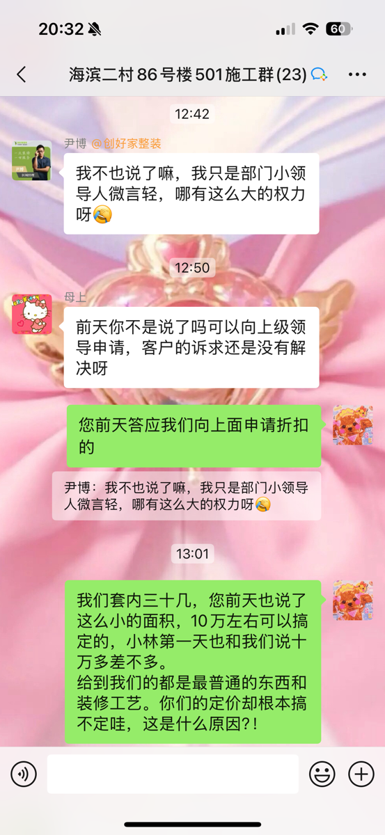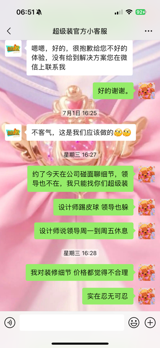領(lǐng)導(dǎo)屢次先答應(yīng)后反悔,毫無(wú)信譽(yù)可言。欺騙,踢皮球,違規(guī),裝修公司一系列的操作都使消費(fèi)者無(wú)法再相信他們。
