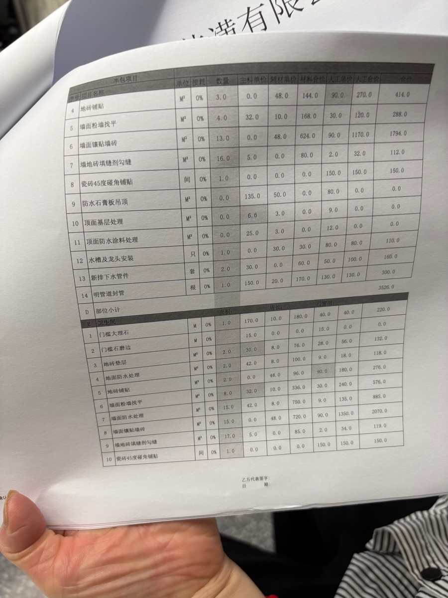 市面上現(xiàn)在都是美縫,預(yù)算里卻讓我們做填縫,還說(shuō)做填縫好。等等,間接使預(yù)算低開高走欺騙消費(fèi)者。臥室市面上大都不防水卻讓消費(fèi)者做防水。