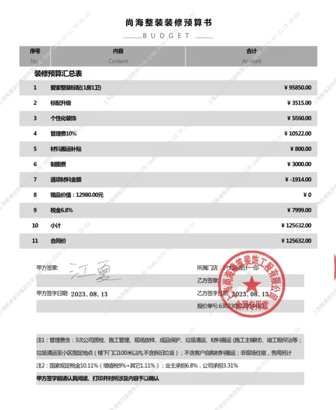 b. 2023年8月19日,董澤楷向我們家收取拆舊費17000;2023年9月3日,再度收取拆舊費4000。他給出的理由是,第一輪收的拆舊費不包括餐廳,但餐廳的拆舊費是在他做完之后才告知我們要收。我們裝修選擇的是全包,作為第一次裝修的人家來說,我們實在搞不清楚哪些是尚海整裝官方哪些是他私人行為。加上一家人都是老實人,房子裝了一半什么都在他手上,生怕他搞得更爛,我們不敢反對裝修中途的增項,但難道老百姓就活該被欺負嗎!48㎡的二手房,老式居民樓,竟然需要21000的拆舊費 ,作為第一次裝修的人家來說,我們是搞不清楚這樣對不對。