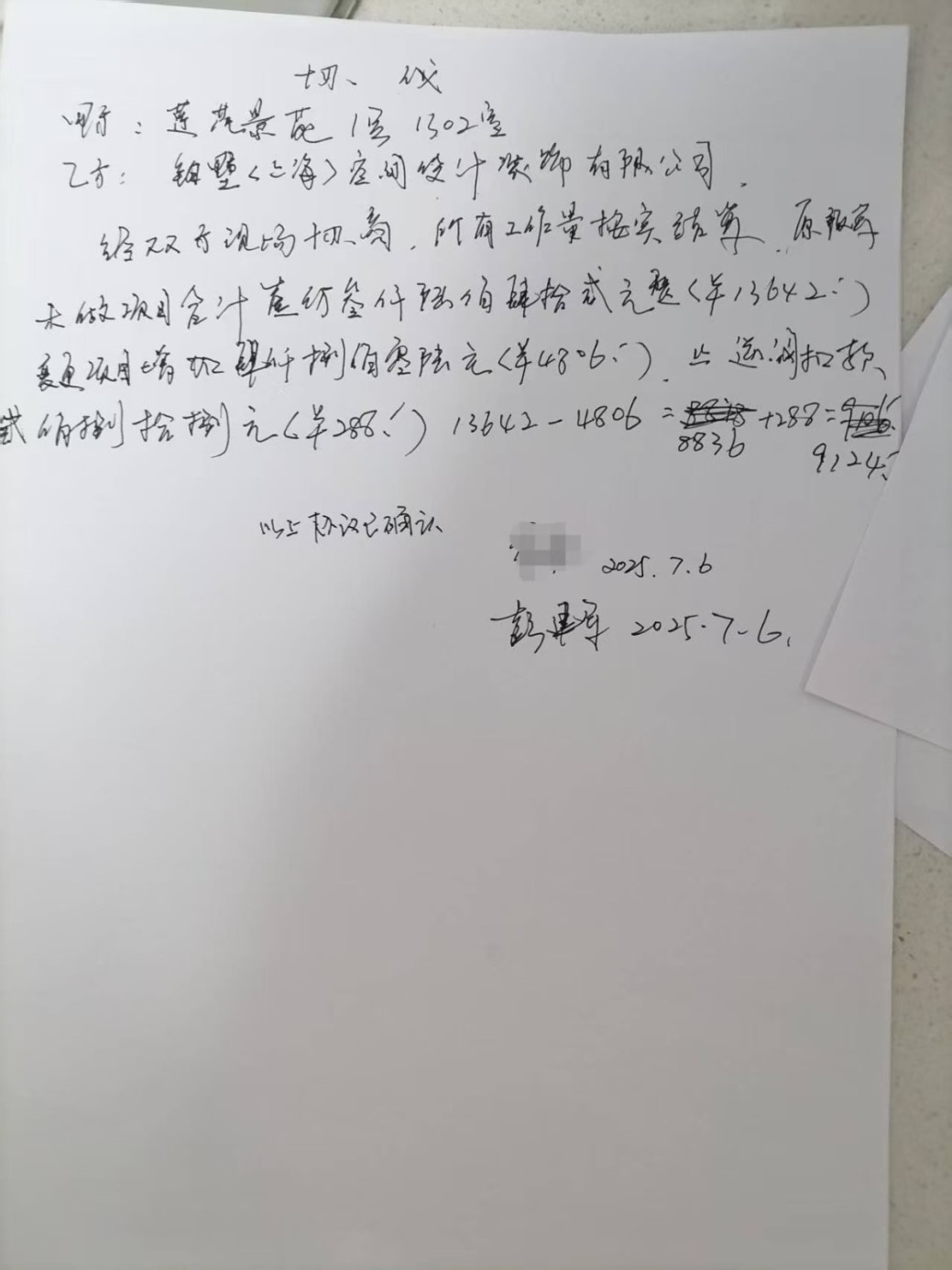 早在2025年2月25日對該公司進(jìn)行第一次投訴,經(jīng)朱老師調(diào)解后,鉑墅公司態(tài)度有所轉(zhuǎn)變,我給予了許多稱贊和肯定,可在現(xiàn)場施工期間將指定的立邦成品膩?zhàn)?,換成柏卡牌膩?zhàn)臃?,且不按照預(yù)算表和業(yè)主的要求使用三種顏色的乳膠漆,而是一色通刷。按照合同第5頁第二條中第3條的約定,材料進(jìn)場未檢查,不與業(yè)主確認(rèn),任由劣質(zhì)材料進(jìn)場。槽點(diǎn)太多,篇幅有限。放任工程,不保質(zhì)不保量不保工期。例如:開關(guān)準(zhǔn)備了一個(gè)多月都不能到位安裝。收取監(jiān)理+現(xiàn)場跟蹤管理費(fèi)3648元,但未盡責(zé)任,每道工序結(jié)束后,未拍照確認(rèn),并造成以上嚴(yán)重過失。