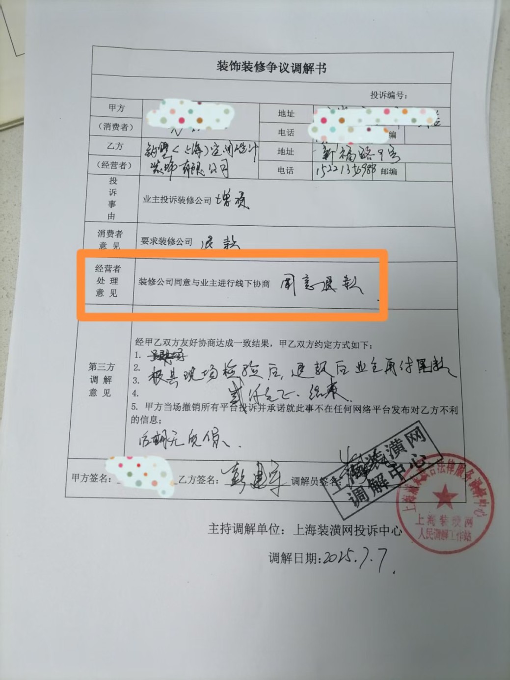 在拖延了86個(gè)工作日后,經(jīng)朱老師調(diào)解,結(jié)束工程,將未完成工程退款。但是目前已過去近40天,不落實(shí)調(diào)解退款,拖延退款尚未到賬。