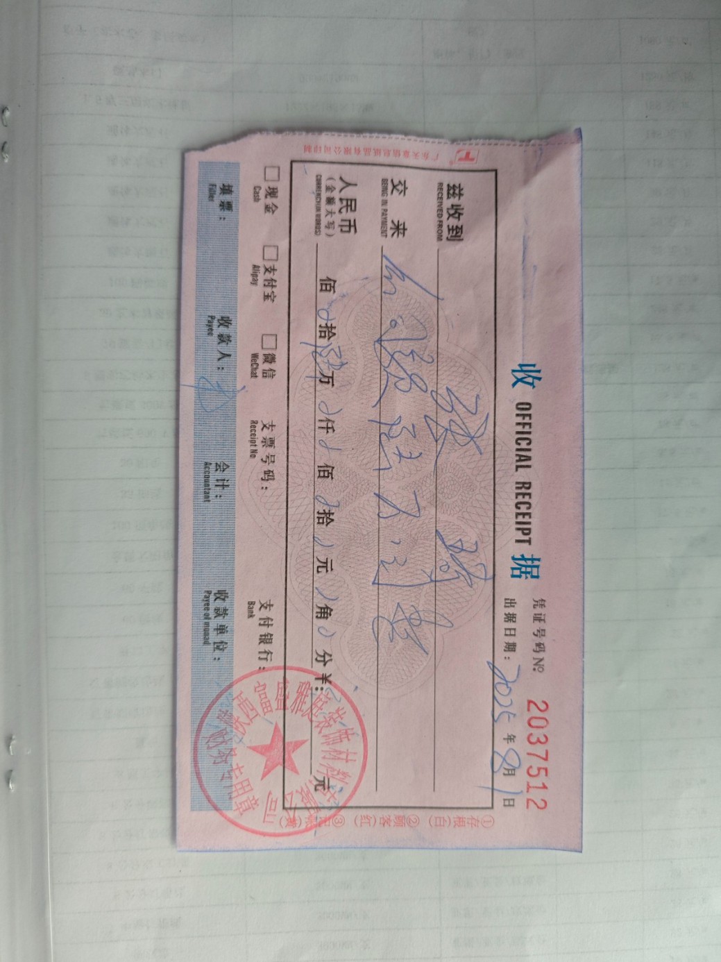 7月16日,業(yè)務(wù)部周經(jīng)理稱王總監(jiān)離職,后續(xù)由其負(fù)責(zé),在其持續(xù)催促下,8月1日,再次打款6萬元并補簽合同,至此已付裝修工程款10萬元;三次付款僅獲蓋公司章的收據(jù),無審核等人員信息。?