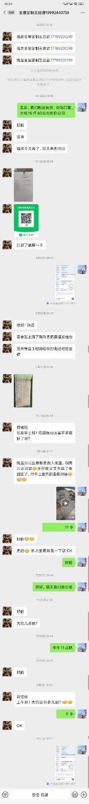 期間我多次確認(rèn) 15 萬元為全屋整裝總費,王總監(jiān)及周經(jīng)理均口頭保證按效果圖完工、不增項,讓我先墊付卸貨、物流及輔材費,憑憑證結(jié)算。