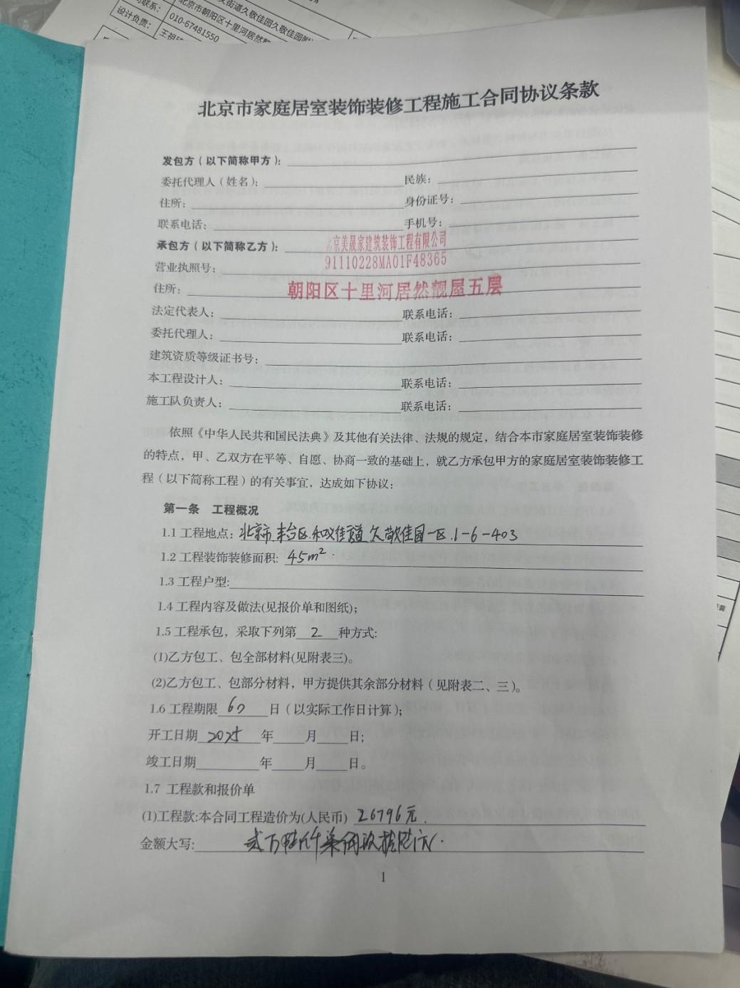 | 裝修面積 | 45m2 | 投訴人手機(jī) | 1590125**** | 被投訴人手機(jī) | 1362127**** |