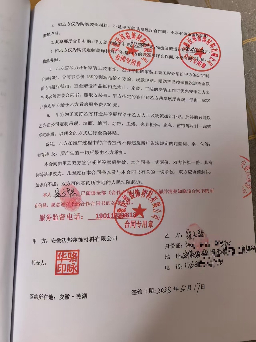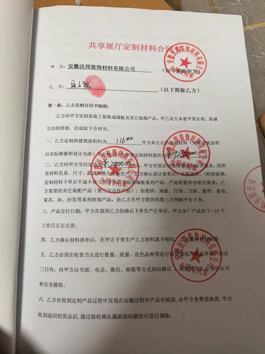 今年4月,我在抖音刷到安徽沃邦裝飾材料有限公司 “幾萬(wàn)整裝拎包入住” 的宣傳,留下聯(lián)系方式后,銷(xiāo)售多次催促去工廠(chǎng)考察。?