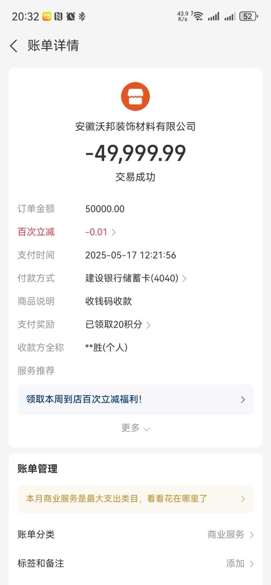 5月17日,在效果圖最終被確認(rèn)后支付了尾款5萬(wàn)元,5.18日支付2萬(wàn)元,三次僅提供普通收據(jù)。