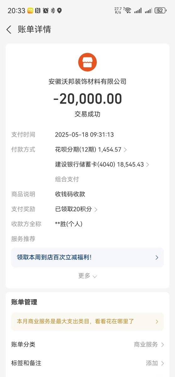 1、我方墊付人工費(fèi):?水電安裝完成后發(fā)來(lái)吊頂墻面板材、瓷磚。收貨時(shí)我聯(lián)系湯經(jīng)理確認(rèn)物流人工事宜,他仍承諾我們先墊付物流、人工、輔材費(fèi).后期實(shí)報(bào)實(shí)銷(xiāo)