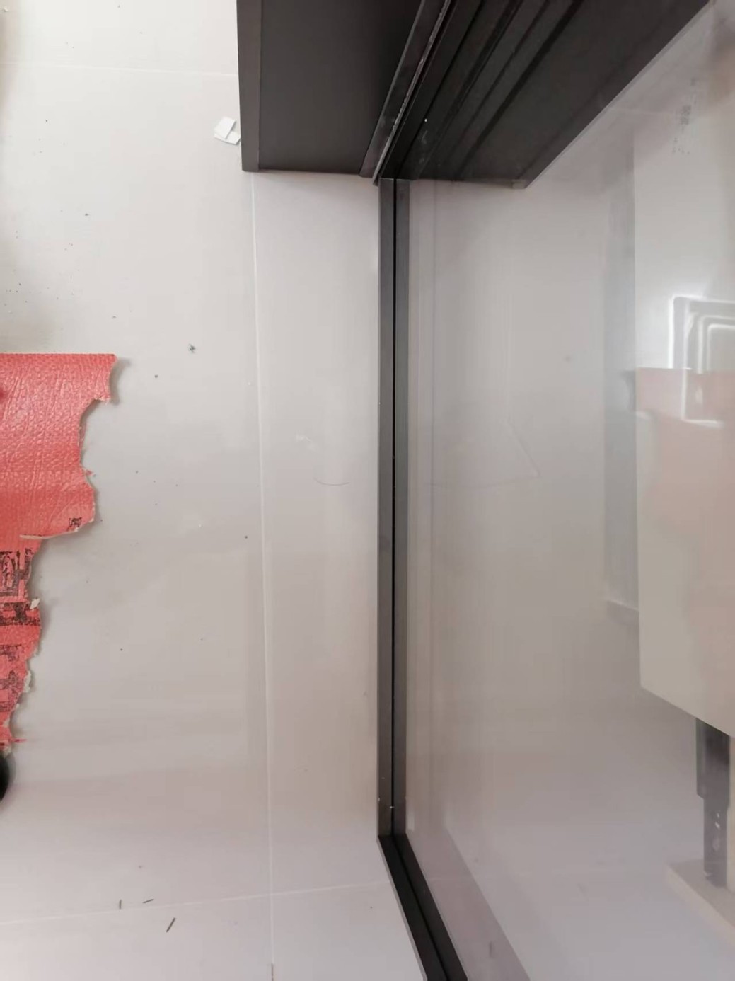 移門與墻面縫隙巨大,導(dǎo)致大量打膠才能補(bǔ)上,嚴(yán)重影響美觀