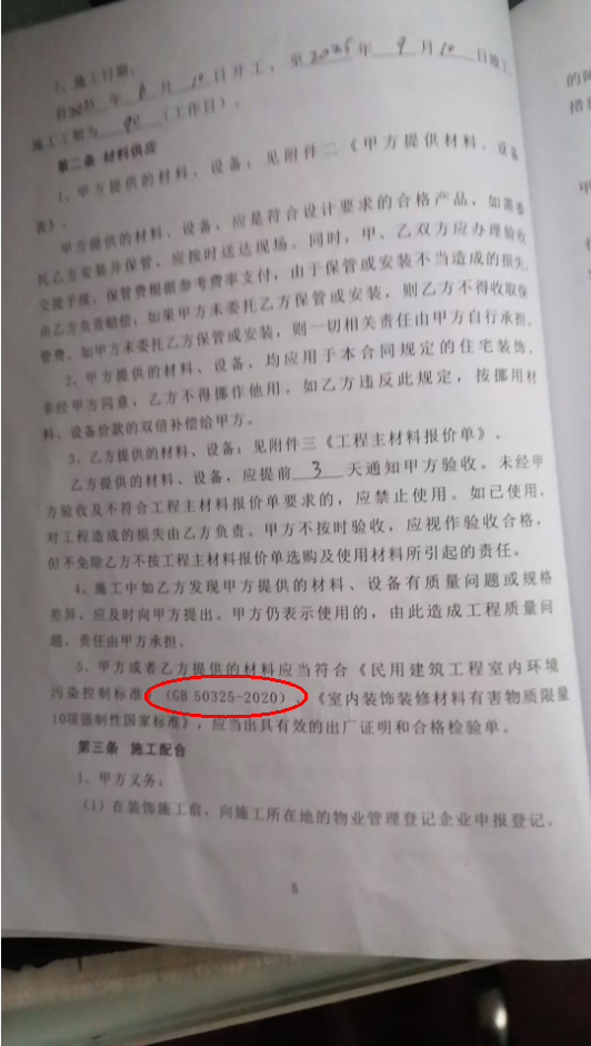 違反合同 違反合同主體 施工過(guò)程中未按照國(guó)標(biāo)規(guī)定且合同主體明文要求的乳膠漆國(guó)標(biāo)標(biāo)準(zhǔn)GB-50325-2020,實(shí)際使用的乳膠漆為GB-18582-2020