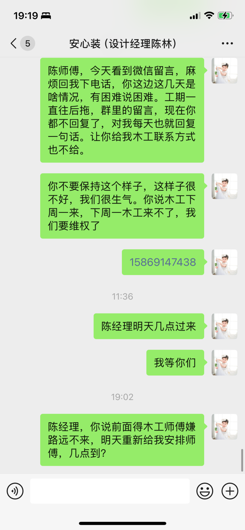 全屋裝修,合同約定2025年7月7日開工,9月15日竣工,到今天9月16日了合同約定中的客廳柜子、客廳吊頂、臥室吊頂、墻面粉刷、廚房櫥柜等還沒有開始。8月21日付過二期款后,到現(xiàn)在一直處于停工狀態(tài),聯(lián)系公司的施工負(fù)責(zé)人,微信幾乎不回消息,偶爾回一次消息馬上再跟他說話后,對方就不再回消息了;故意不接電話,偶爾接一次電話也是說幾句就掛,今天說明天一定開始施工,明天又托后天,就是這樣一直口頭上拖延,實(shí)際一直停工。